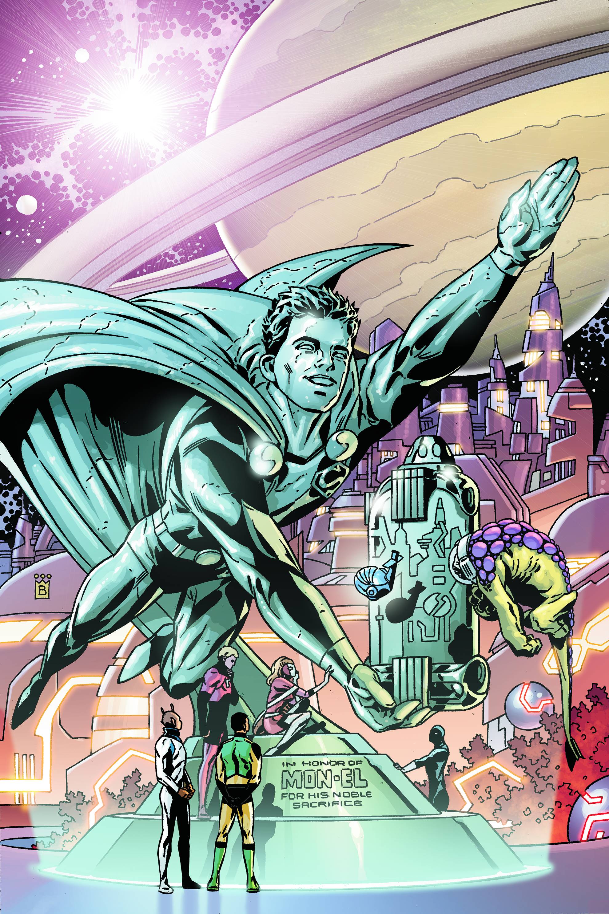 Written by JAMES ROBINSON Co-feature written by STERLING GATES Art by BERNARD CHANG Co-feature art by TRAVIS MOORE Cover by MARK BUCKINGHAM 1:10 variant cover by JOE QUINONES Mon-El's final task affects the future of the entire universe! Plus, Brainiac 5 and R.E.B.E.L.S. leader Brainiac 2 confront their evil ancestor - the original Brainiac!