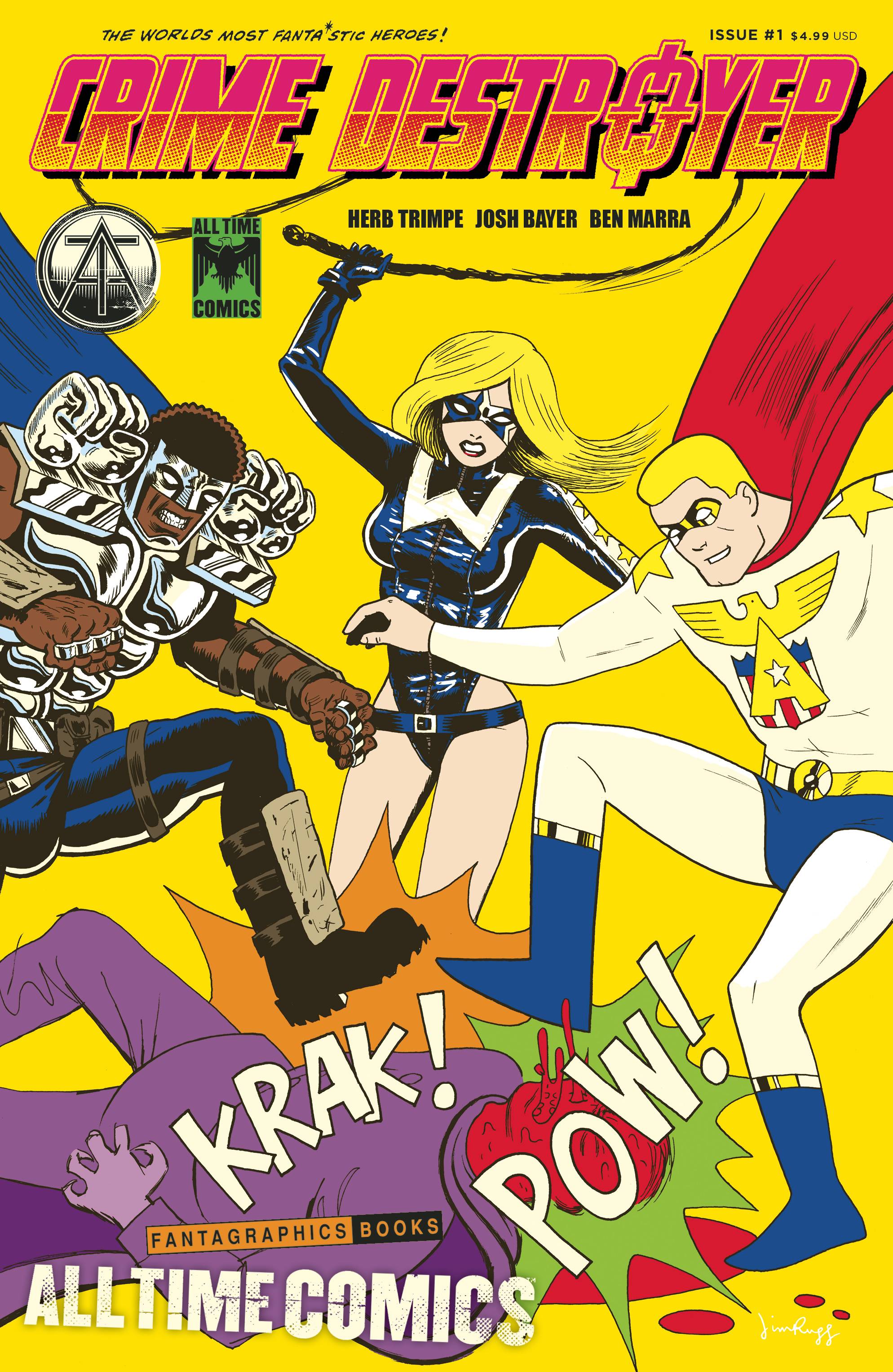From Fantagraphics, the publisher of the world's greatest cartoonists, comes ALL TIME COMICS, a shared superhero universe featuring the world's most fantastic heroes. Atlas! Blind Justice! Bullwhip! Crime Destroyer! Each issue of ALL TIME COMICS features a mash up of new cartoonists and classic comic book creators collaborating with writer Josh Bayer to unleash superhero stories that no other publisher would dare to publish: a stunning series of six comic books featuring startling stand alone, interconnected adventures chock full of retro crime fighting. All Time Comics: Crime Destroyer issue 1 is a 36-page oversized spectacular featuring the wonderful writing of Josh Bayer, the irresistible inks of Ben Marra and the last art by legendary artist Herb Trimpe, who co-created Wolverine. Upcoming issues feature art by Rick Buckler Jr., Ben Marra, Al Milgrom, Noah Van Sciver, and more. Issue #1 will feature two distinct covers, one by Jim Rugg and the other by Johnny Ryan. Upcoming issues feature art by Rick Buckler Jr., Ben Marra, Al Milgrom, Noah Van Sciver, and more.