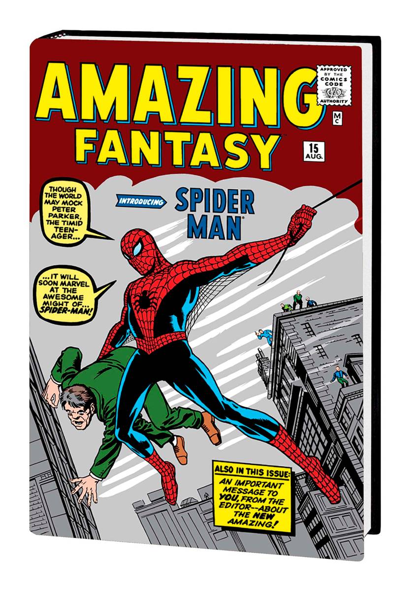 In 1962, in the pages of a series slated for cancellation, Stan Lee and Steve Ditko created one of the most enduring icons in American popular media: the Amazing Spider-Man! Turning the concept of a super hero on its head, they imbued the young, guilt-ridden Peter Parker with the fantastic powers of an arachnid and the fantastic pressures of an everyday teenager. The combination was pure magic. In 40 issues of web-slinging, wisecracking wonderment, Lee and Ditko built the foundation for decades of Spidey spectaculars: girl trouble, bill trouble, the Daily Bugle and a cast of friends, family and foes unlike any other! Now, experience the entire Lee/Ditko Spider-Man run in one gorgeous volume! Collecting AMAZING SPIDER-MAN (1963) #1-38, AMAZING SPIDER-MAN ANNUAL (1964) #1-2, STRANGE TALES ANNUAL #2 and material from AMAZING FANTASY (1962) #15 and FANTASTIC FOUR ANNUAL #1. All Ages