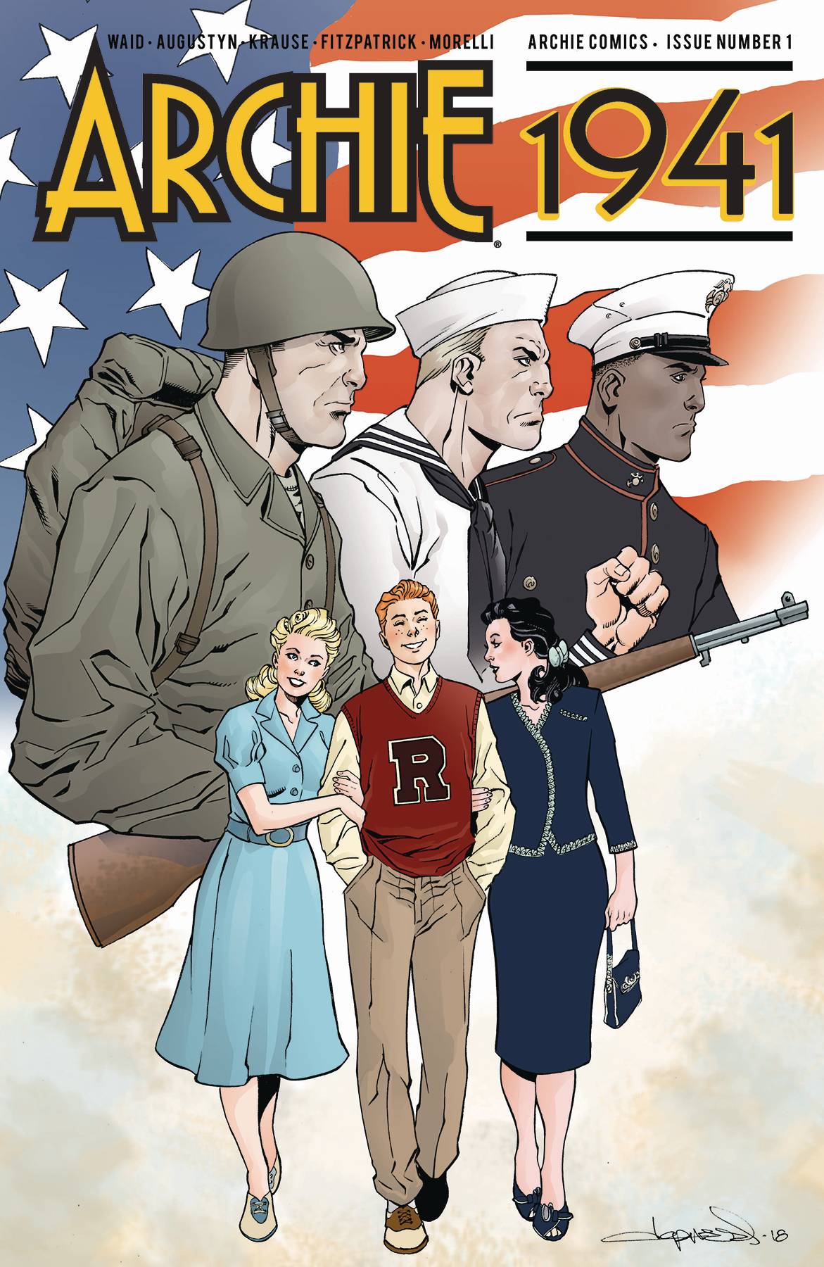 THE HISTORIC, GROUND-BREAKING MINI-SERIES STARTS HERE! Archie has been around for over 75 years and has been through many significant moments in time, but never before have we seen the characters take on real-world events as they unfold. WWII is looming and Archie and many young men from Riverdale are close to enlistment age. If you're a Riverdale teen, how would you cope with a looming world-changing event? Join the writing team of MARK WAID and BRIAN AUGUSTYN along with artist PETER KRAUSE for the all-new mini-series that is sure to have everyone talking!