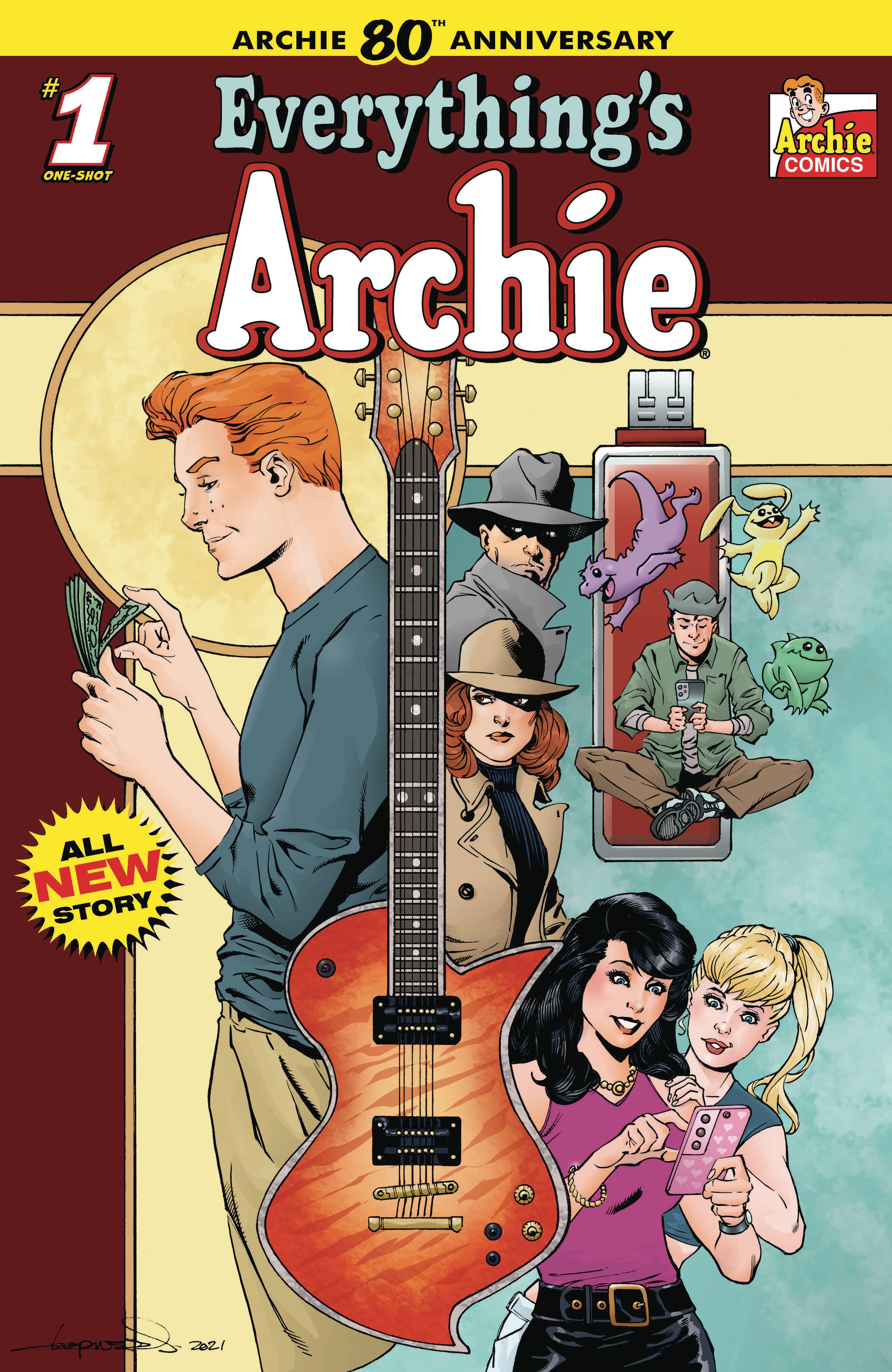 FIRST ISSUE IN AN ALL-NEW SERIES OF 80TH ANNIVERSARY ONE-SHOTS! Finally Archie declares his TRUE LOVE, and its a very expensive guitar! So Archie picks up a few extra jobs to make some cash, what could go wrong?! Spies, TV Execs, tech warfare, nothing in Riverdale will be the same! No place is safe when Everything's Archie!