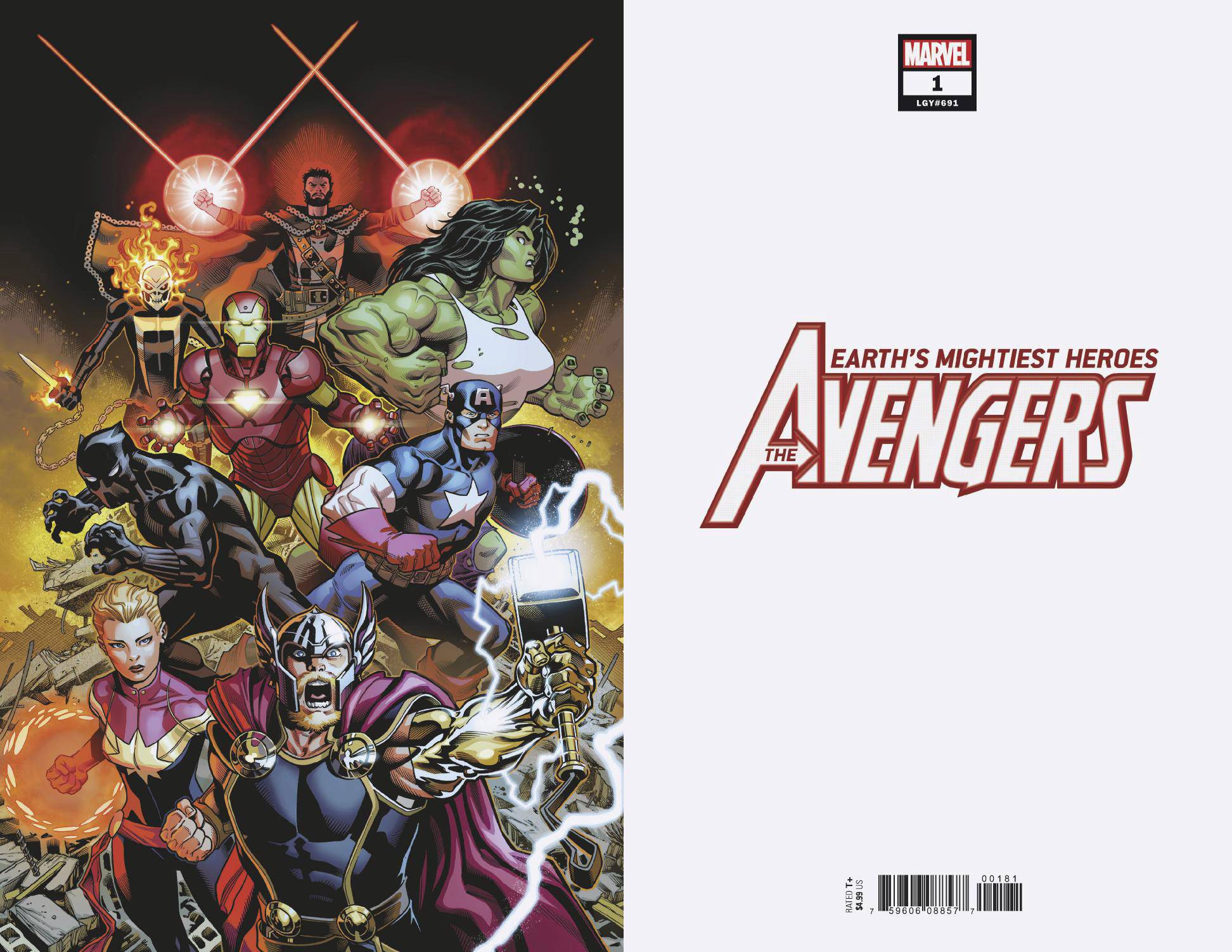 A NEW ERA DAWNS FOR EARTH'S MIGHTIEST HEROES - courtesy of JASON AARON and ED McGUINNESS! Thor Odinson. Steve Rogers. Tony Stark. The Big Three of the Avengers are reunited at last! And just in time to save the world from total annihilation at the hands of their most powerful enemies yet: the 2000-foot-tall space gods known as Celestials. Behold the coming of the Final Host. Who will answer the call to assemble for a wild new era of Earth's Mightiest Heroes? Hint: one of them has a flaming skull for a head. And what strange, world-shaking connection exists between the Final Host and Odin's ancient band of Prehistoric Avengers? Rated T+