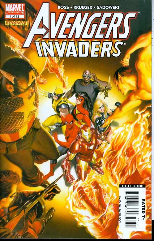 Written by Jim Krueger and Alex Ross Penciled by Steve Sadowski Cover by ALEX ROSS Variant Cover by David Finch Legends Live Again. The original Invaders (Captain America , Bucky , Human Torch , Toro , and the Sub-Mariner) return in a twelve issue maxi-series by the award winning team behind EARTH X, Justice and Project Superpowers .The greatest super-team of World War II finds themselves transported from the battlefields of the Second World War to a future they never imagined! Now, the Invaders find themselves confronted by two teams of Avengers who want desperately to believe these heroes are who they say they are, while Tony Stark faces his greatest challenge since the Civil War as he must deal with the "return" of Steve Rogers. Confronted by a world they barely recognize, the Invaders will have to show two teams of the Earth's Mightiest Heroes just what kind of power, courage and sheer determination it took to defeat the forces of unrelenting evil in the Twentieth century. In fact...they may just have to do it again in the Twenty-First. 32 PGS./Rated T+ ...$2.99