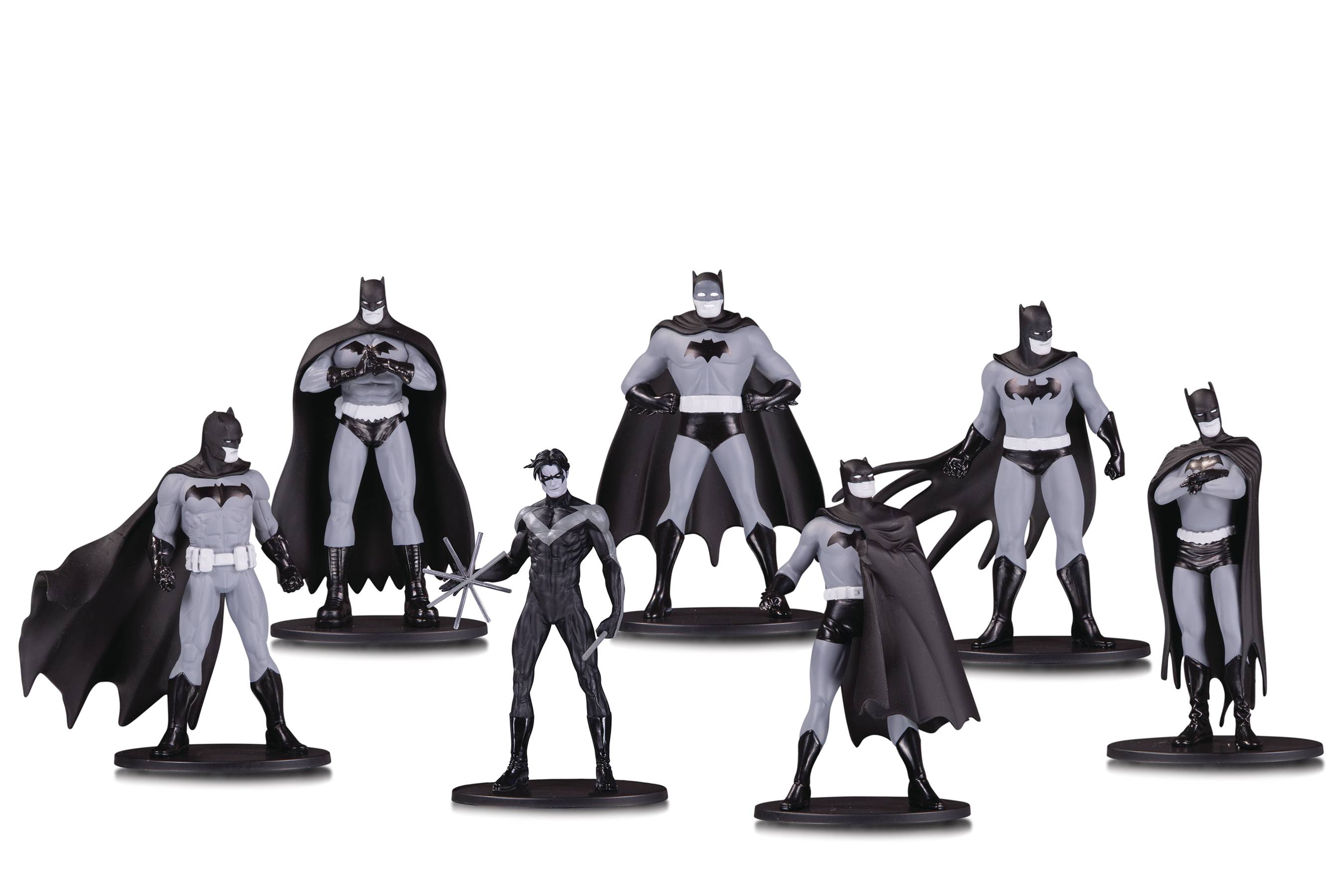 DC Collectibles' long-running line of BATMAN: BLACK AND WHITE statues series has captured the hearts of collectors and comics fans alike with its interpretations of the World's Greatest Detective and select Gotham City characters from the industry's brightest stars. Starting in 2019, DC Collectibles is creating an all-new offshoot of the beloved black-and-white collectibles, this time in 3.75" tall PVC figures. Released in box sets of seven, including resized re-releases of some of the most popular statues in the line's history, each set will come with six previously available mini-figures plus one direct-market-exclusive figure. Box Set One comes out in May 2019, and features figures based on art by: - Amanda Conner - Darwyn Cook - Jason Fabok - Patrick Gleason - Frank Quitely - Dick Sprang - Direct Market-exclusive Jim Lee Nightwing. • Allocations may occur • Final products may differ from images shown • Approximately 6 units per carton