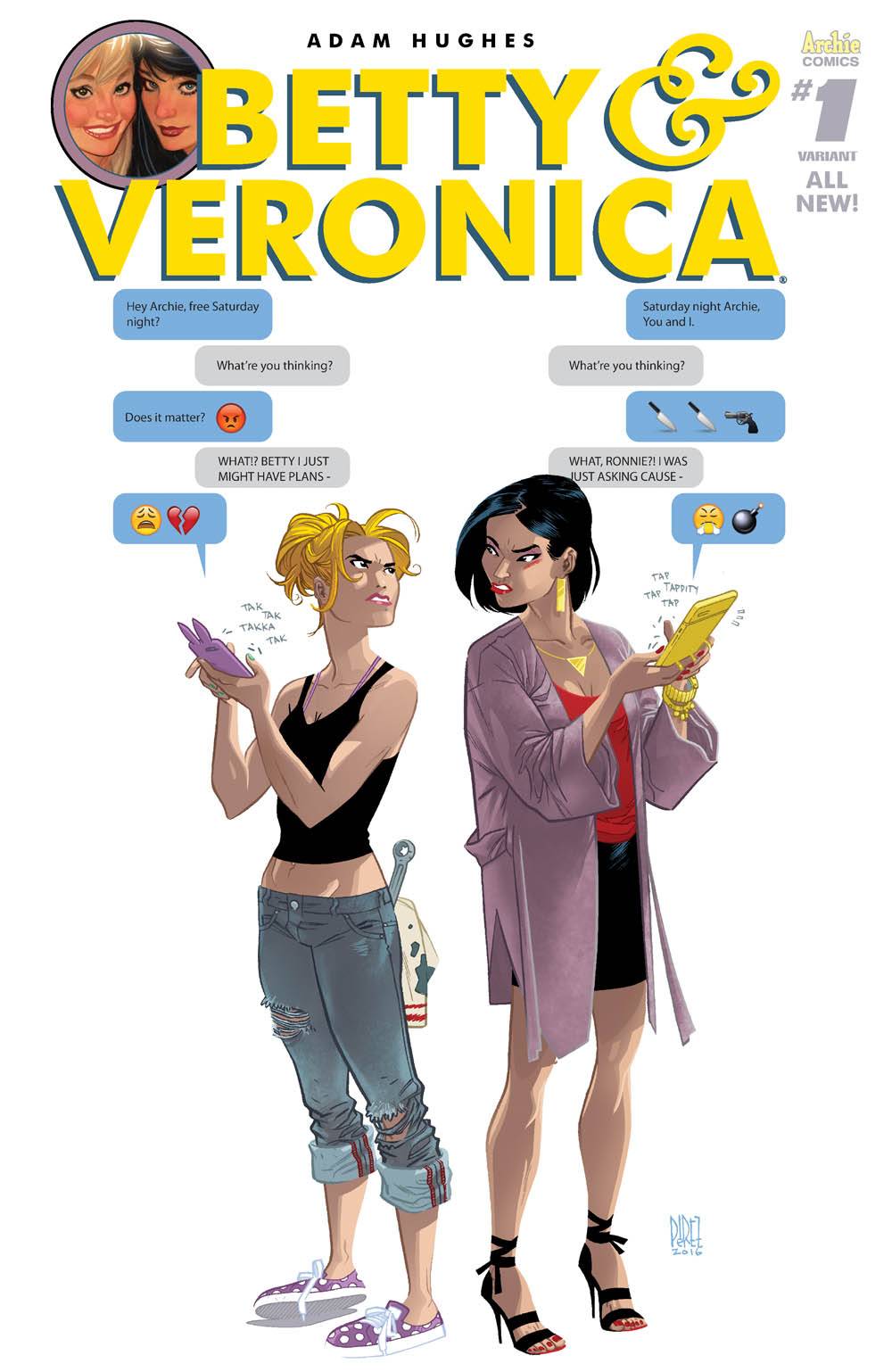 It's Betty vs. Veronica! The most highly-anticipated debut in comics history is here! Betty and Veronica are America's sweethearts - until they turn on each other! Pops' Chocklit Shoppe is being taken over by a huge coffee company. When Betty and Veronica go head-to-head over the issue, all bets are off! Friendships will shatter. Cities will burn. Nails will be broken. Betty and Veronica are back in this all-new #1 from comics legend Adam Hughes (Wonder Woman, Catwoman, Before Watchmen: Dr. Manhattan)!