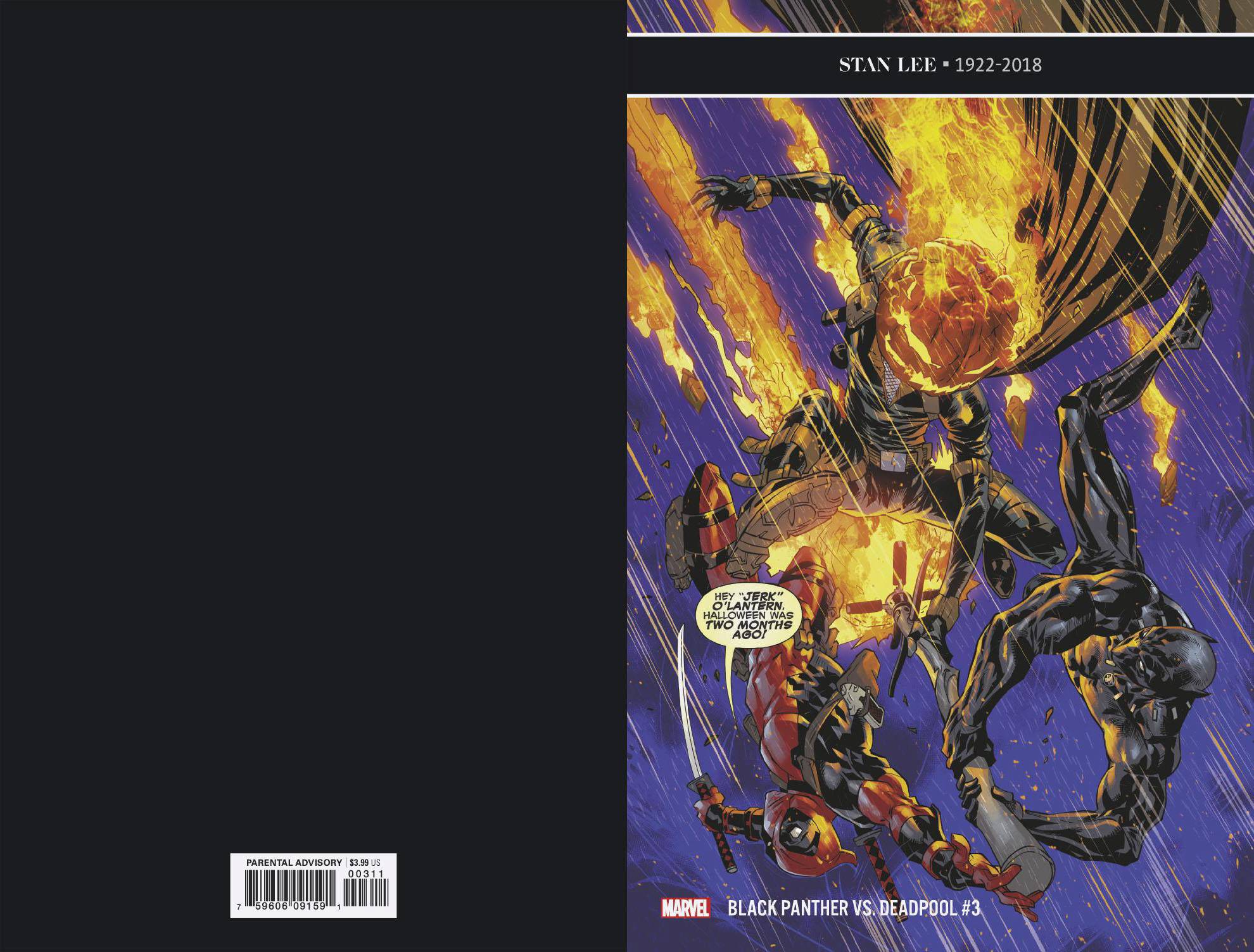 OFF WITH HIS HEAD! But WHOSE head? Deadpool's? T'Challa's? ...JACK O'LANTERN'S? (And which Lantern?) Well SOMEbody better keep his head, because Deadpool and the Black Panther now have a MUTUAL THREAT on their hands-and if they don't act soon, there'll be no Wakanda left to fight for! Parental Advisory
