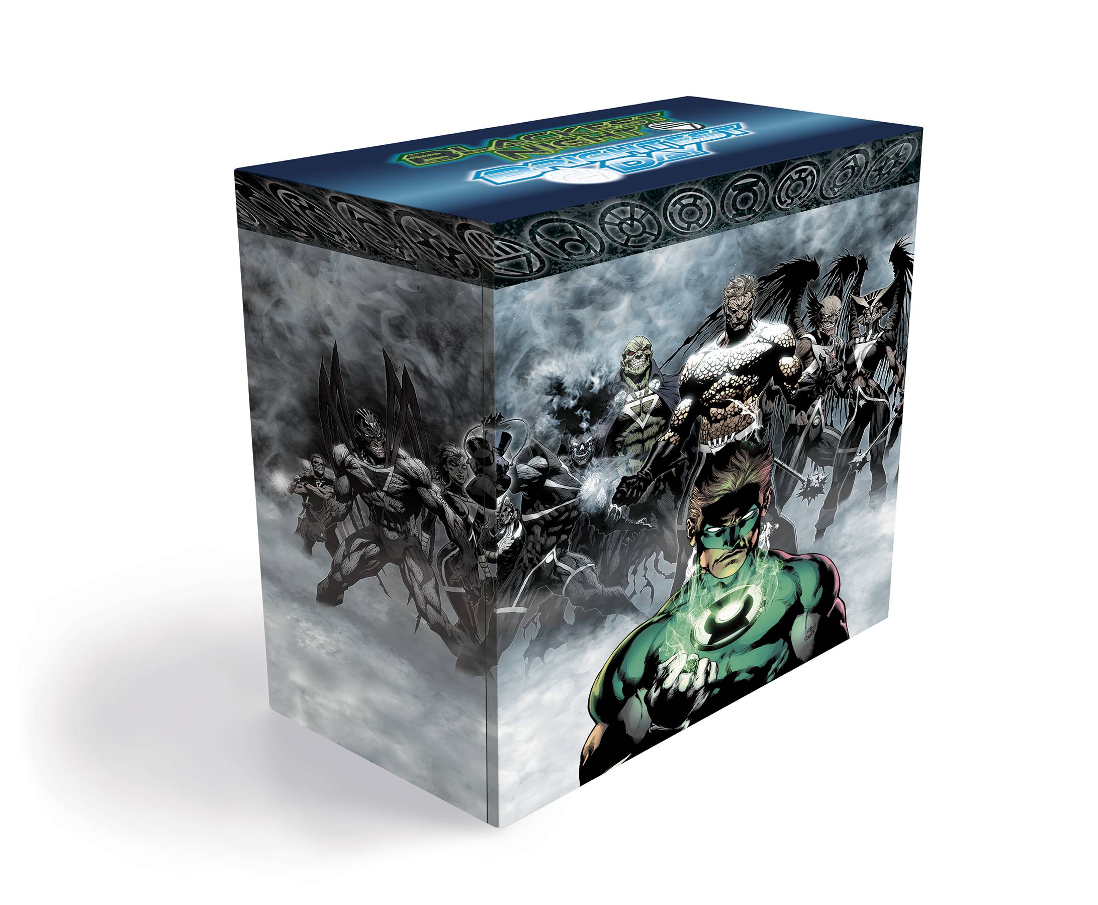 A war has been brewing between the different colored Lantern Corps, with the Green Lanterns fighting the Yellow, the Red trying to destroy everything, and the Blue attempting to broker peace among the tribes. But the real battle is yet to come: the undead Black Lanterns are coming and seemingly nothing can stop them. Putting aside old vendettas, it's up to Hal Jordan and the Green Lantern Corps to lead DC's greatest champions as well as their deadliest foes in a battle to save the universe from an army of the dead. Then, once dead heroes Aquaman, Martian Manhunter, Firestorm, Hawkman, Hawkgirl, Deadman, Jade, Osiris, Hawk, Captain Boomerang, and Zoom must discover the mysterious reason behind their return and uncover the secret that binds them! This eye-popping box set includes 12 brand-new hardcovers that collect this entire epic, featuring stories by top DC talent including Geoff Johns, Peter J. Tomasi, Ivan Reis, and many more! Plus, this box set also includes a set of nine plastic rings from across the spectrum of the many Corps that are a part of this story! Includes 12 new hardcover collections! • Blackest Night: Prelude collects Green Lantern #26-28 and 36-43, and Final Crisis: Rage of the Red Lanterns #1 • Blackest Night collects Blackest Night #0-8 and pages from Untold Tales of the Blackest Night #1 • Blackest Night: Green Lantern collects Green Lantern #44-52 • Blackest Night: Green Lantern Corps collects Green Lantern Corps #39-47 • Blackest Night: Black Lantern Corps Book 1 collects Blackest Night: Batman #1-3, Blackest Night: Superman #1-3, and Blackest Night: Wonder Woman #1-3 • Blackest Night: Black Lantern Corps Book 2 collects Blackest Night: The Flash #1-3, Blackest Night: JSA #1-3, and Blackest Night: Titans #1-3 • Blackest Night: Rise of the Black Lanterns collects The Atom & Hawkman #48, Phantom Stranger #42, Green Arrow #30, Adventure Comics #7, Starman #81, The Question #37, Catwoman #83, Weird Western Tales #71, and The Power of Shazam! #38 • Blackest Night: Tales of the Corps collects Blackest Night: Tales of the Black Lanterns #1-3, Adventure Comics #4-5, Untold Tales of the Blackest Night #1, stories from Green Lantern #18-20, 40, and 49, Green Lantern/Sinestro Corps: Secret Files #1, Tales of the Sinestro Corps: Superman-Prime #1, and pages from Blackest Night #0 • Brightest Day: Green Lantern collects Green Lantern #53-62 • Brightest Day Book 1 collects Brightest Day #0-11 • Brightest Day Book 2 collects Brightest Day #12-25 • The Book of the Black collects sketch material (both previously released and new), series proposals, variant covers, posters, Blackest Night outline scripts, and more