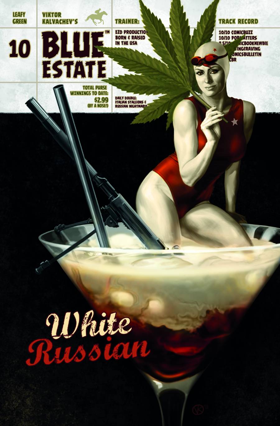 "DEAD HEAT" With just three episodes left in the season, the race for revenge is on and the fight for survival comes down to a photo finish! See who goes to the mattresses, who sleeps with the fishes and who just stays groovy as Blue Estate scores another bull's-eye with part ten of the fast, funny, 100% cool series (But wait! There's more...at www.BlueEstateComic.com!)