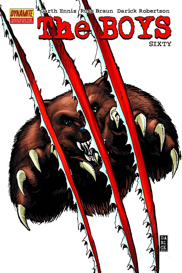 Covers: Darick Robertson Writer: Garth Ennis Artist: Russ Braun Colorist: Tony Aviña The first of The Boys' two concluding stories begins with a bang, as Vought-American's plans for the White House are pre-empted in nothing short of spectacular style. Butcher prepares for war with the Homelander while MM finally loses it completely- in part 1 of the 6-part "Over the Hill with the Swords of a Thousand Men".