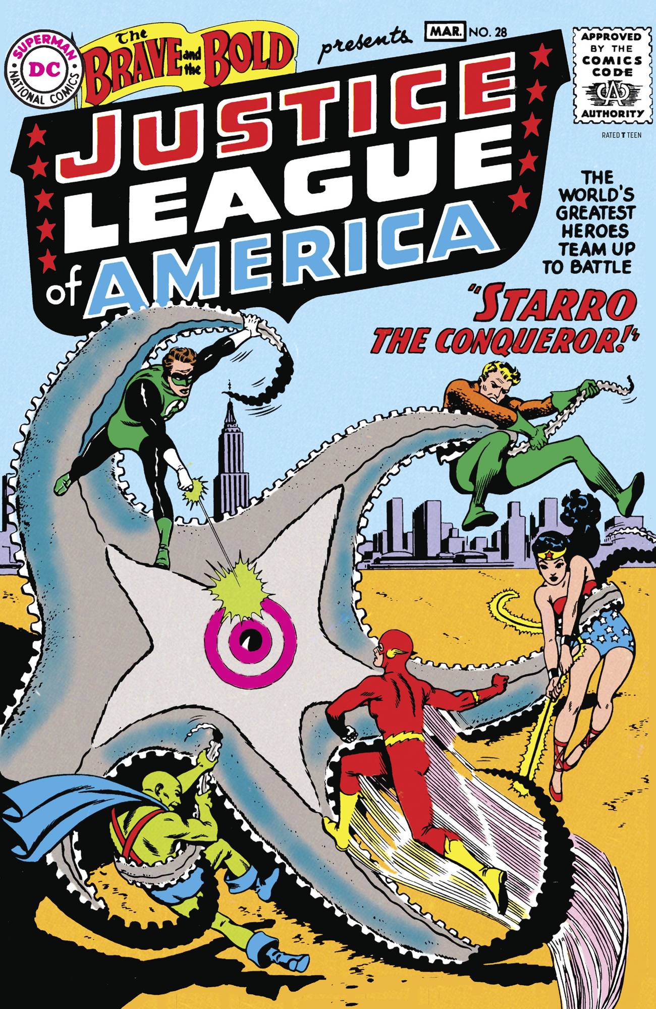 The 1960 epic that first introduced the Justice League of America is reprinted as the World's Greatest Heroes team up for the first time to battle the threat of Starro the Conqueror!