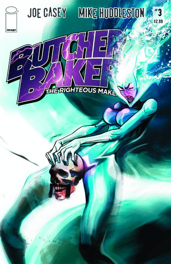 story JOE CASEY, art & cover MIKE HUDDLESTON Car chases and coimcbooks are like oil and water - until now! You'll feel the motion of the ocean when you open this issue! You'll feel the wind in your hair as Butcher Baker races for his life! Plus, as more enemies conspire, Arnie B. Willard has a cosmic epiphany! Don't miss it!