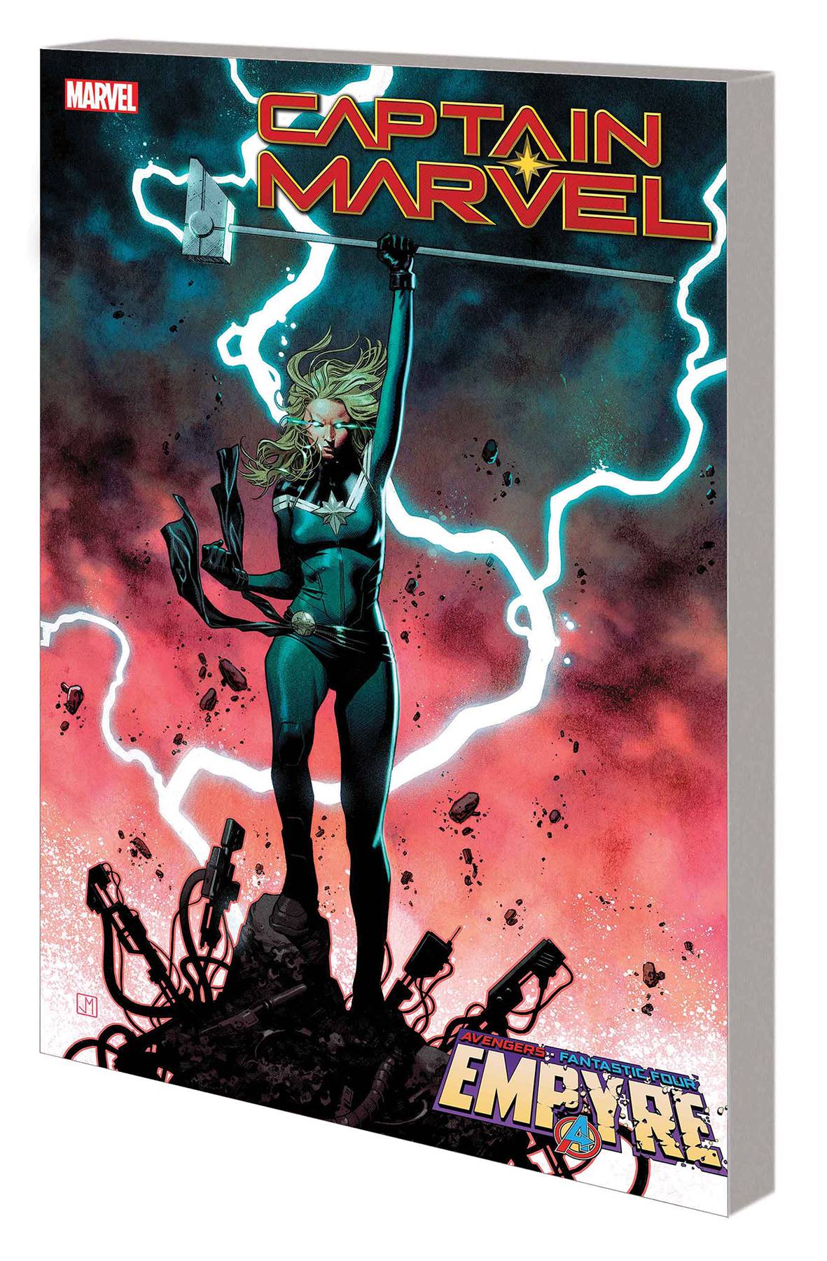 The end of an era! It's poker night at Casa Danvers with Wolverine, Monica Rambeau, Spider-Woman, Hazmat, Jessica Jones and Ms. Marvel all in the game! But the fun ends as a cosmic conflict breaks out. And when EMPYRE unites the Kree and the Skrulls, Captain Marvel takes on a bold new role - as the Supreme Accuser, wielding the Universal Weapon! Carol has become Emperor Hulkling's swift and necessary hammer of justice - but when she's tasked to accuse a renegade soldier responsible for heinous crimes, she finds herself torn between two worlds! Carol recruits some of her staunchest allies to help bring down the hammer of justice! But with the end of a war, Captain Marvel must make a choice that will define her life - and the lives of those closest to her! Collecting CAPTAIN MARVEL (2019) #17-21. 112 PGS./Rated T+