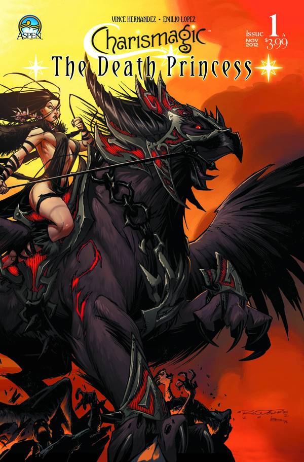 Vince Hernandez - Story / Emilio Lopez - Art / Jocelyn Dunn - Colors Explore the breathtaking world of Charismagic by journeying back to its ancient origins! Orlana, spoken of in hush tones as the "Death Princess", rules over all who oppose her reign. Not by force, but through the most dangerous of all magical powers-the ability to control minds! Under the Death Princess' shadow of dominance and fear, the humans of Earth find themselves at risk of their civilization falling completely under her rule forever! Until Kon, a young but powerful wizard finds himself on an unimaginable quest to break Orlana's curse on humanity, and set free those she wishes to forever hold under her spell! The latest chapter in the Charismagic saga begins now! Created and written by Aspen's own Vince Hernandez, with stunning art by Emilio Lopez and Jocelyn Dunn, make sure to be a part of the exciting new world of CHARISMAGIC: THE DEATH PRINCESS!