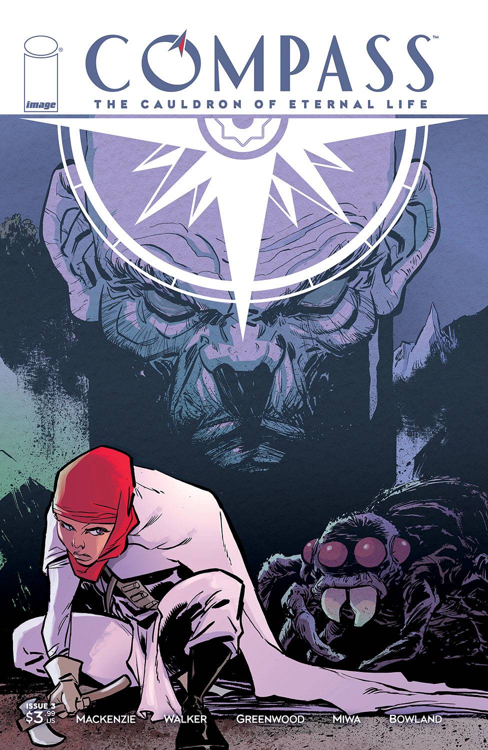 GREG RUCKA proudly presents a new direction in adventure with... COMPASS! Evil pursues Shahidah El-Amin to the ends of the Earth...and miles beneath it. The quest for the Cauldron of Eternal Life takes Shahi - and her one-time sister-in-arms, now enemy, Ling Hua - deep within the darkest caverns of Christendom, where the treasure hunters face monsters, visions, and the legions of the dead! The acclaimed OLD GUARD: TALES THROUGH TIME team of writers ROBERT MACKENZIE and DAVE WALKER (LAZARUS SOURCEBOOK) and artist JUSTIN GREENWOOD (LAZARUS: X +66, Stumptown) plunge comics' boldest new heroine to thrilling depths of danger!
