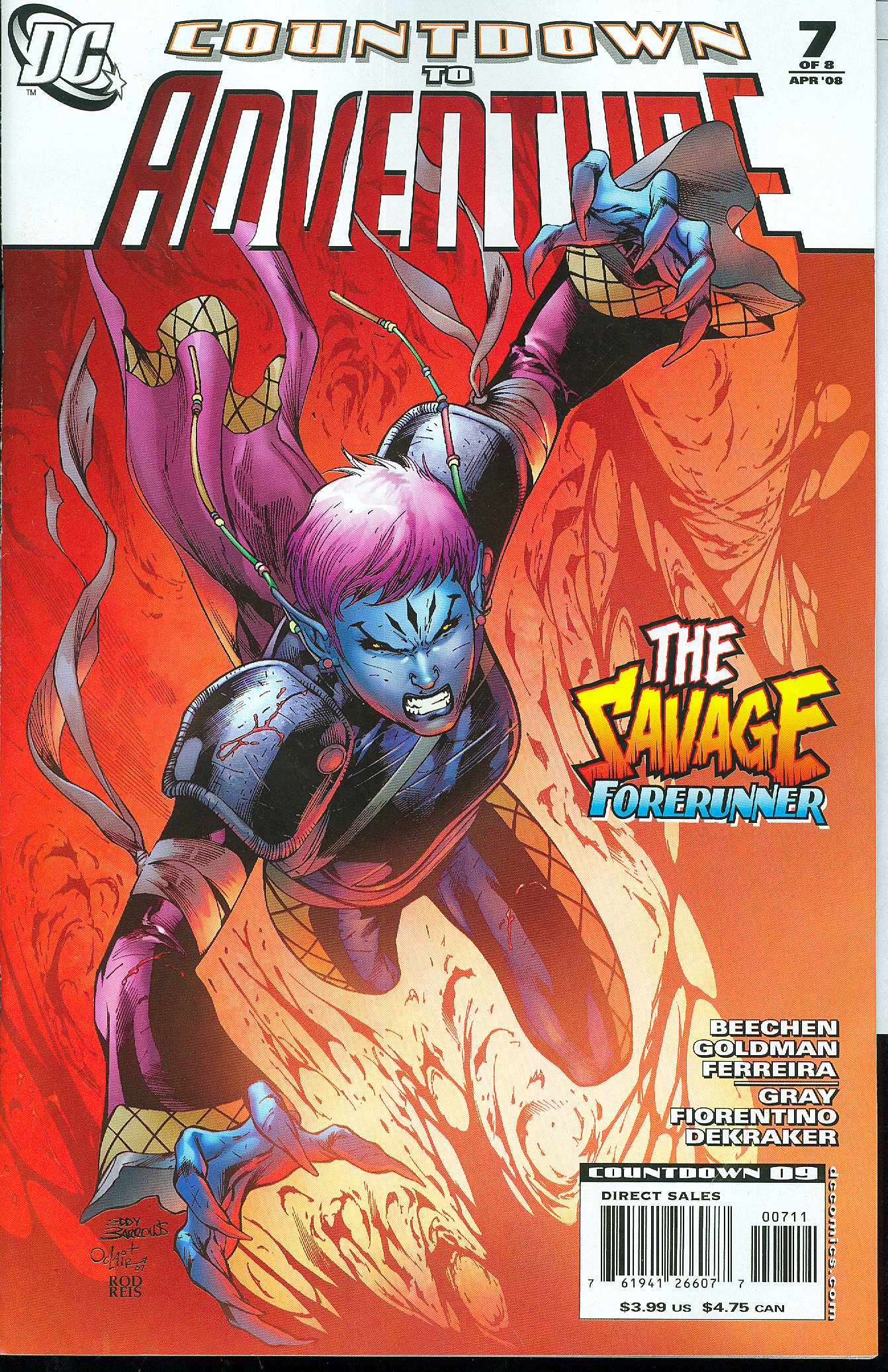 Written by Adam Beechen & Justin Gray Art by Allan Goldman & Julio Ferreira and Fabrizio Fiorentino & Adam DeKraker Cover by Eddy Barrows & Oclair Albert Strange, Starfire and Animal Man have been reunited, but will their combined powers be enough to stop the Lady Styx virus that has infected the planet Rann? Plus, the continuing adventures of Forerunner! On sale February 27