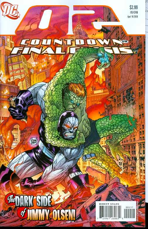 Story by Paul Dini Story consulting by Keith Giffen Script by Gray & Palmiotti; art by Scott Kolins Covers by Scott Kolins The Great Disaster has occurred, and all hell breaks loose as all the storylines in COUNTDOWN TO FINAL CRISIS come to a climax, threatening Darkseid and Jimmy Olsen and Mary Marvel and the future of their Earth! COUNTDOWN 2 on sale April 16 32 pg, FC, $2.99 US