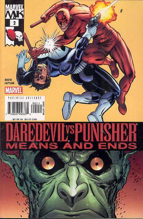 Written by DAVE LAPHAM Pencils & Cover by DAVE LAPHAM MEANS AND ENDS, PART 2 OF 6 David Lapham (Stray Bullets) continues his electric series as things heat up between the Punisher and Daredevil! As tension mounts in the city and an innocent civilian family is confronted by thugs, the Punisher begins a one-man killing spree, slicing through the Mafia with a reckless abandon. But Hammerhead and his cohorts make a play to consolidate their power, bringing in some super-powered muscle to claim a ten-million-dollar bounty on the Punisher's head! And Daredevil-the new "Kingpin" of the city - won't go silently into the night. Featuring a confrontation between Daredevil and Hammerhead!