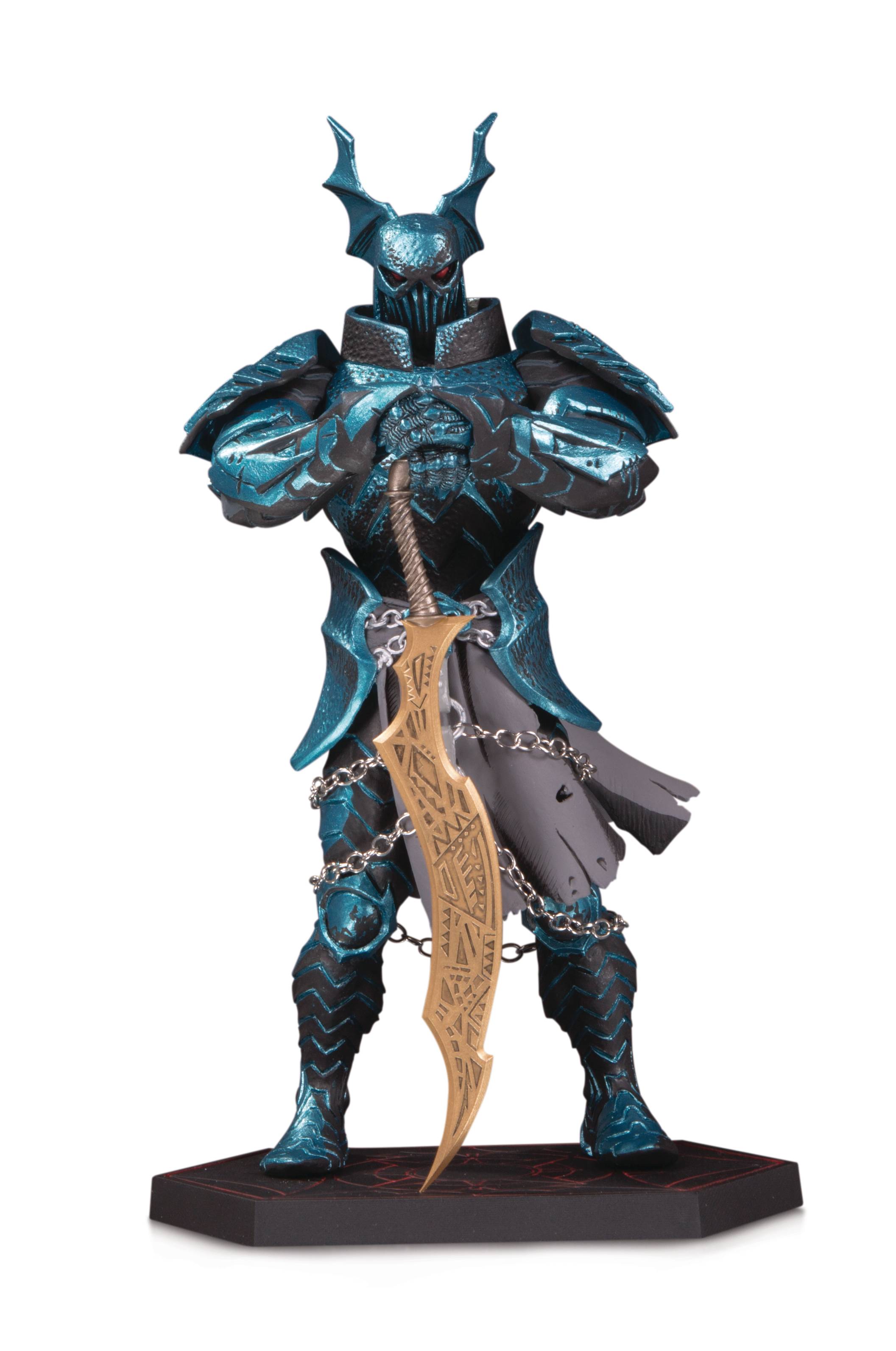 Rocking into our world from the pages of DARK NIGHTS: METAL comes the bloodthirsty Merciless. A nightmarish fusion of Batman and Ares, this member of the Dark Knights is a supremely powerful warmonger, taking all of the best tactical skills of Batman and pairing them with the might of Ares. This 8.46" tall polyresin statue is menacingly detailed based on the art in the miniseries. From the stunning, amplified Ares Bat-helmet that corrupted the Caped Crusader to the chains highlighting the blazing blue armor to the God Killer sword, it will command the room no matter where it stands. Limited to 5,000 pieces. Individually numbered. Figure measures 8.46" tall. Allocations may occur.