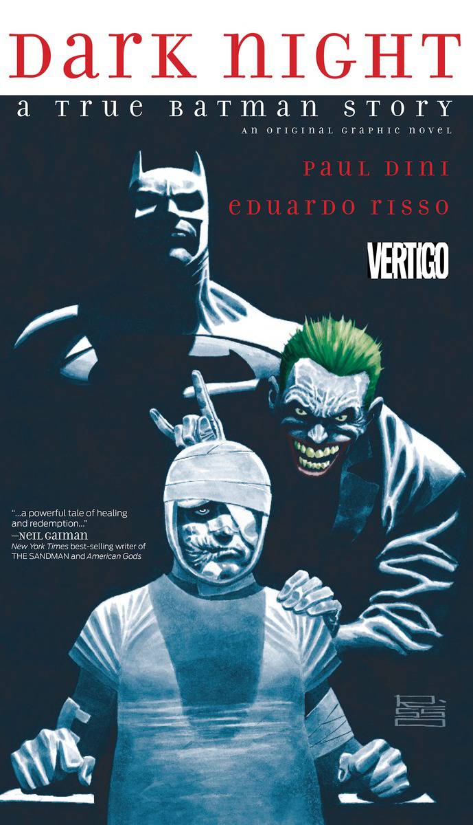 The Caped Crusader has been an icon of justice and authority for generations. But in this surprising original graphic novel, now in trade paperback for the first time, we see Batman in a new light-as the savior who helps a discouraged man recover from a brutal attack that left him unable to face the world. In the 1990s, Eisner Award-winning writer Paul Dini had a flourishing career writing the hugely popular Batman: The Animated Series and Tiny Toon Adventures. Walking home one evening, he was jumped and viciously beaten to within an inch of his life. His recovery process was arduous, hampered by the imagined antics of the villains he was writing for television, including The Joker, Harley Quinn and the Penguin. But Dini also always imagined the Batman at his side during his darkest moments. DARK NIGHT: A TRUE BATMAN STORY is the harrowing and eloquent autobiographical tale of Dini's courageous struggle to overcome a desperate situation. It is a Batman story like none other and one that will truly resonate with fans, with art by Eduardo Risso (100 BULLETS). MATURE READERS