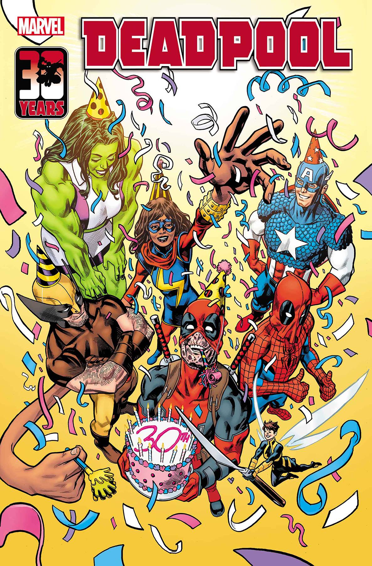 HE'S THE MERC WITH THE MOUTH! (FULL OF BIRTHDAY CAKE!) Deadpool's turning 30! And to help celebrate, we've assembled some of his classic storytellers to tell tales of Wade Wilson birthdays past, present and future! A first birthday with time-traveling assassins! A sweet sixteen party that would make Molly Ringwald weep! A 100th birthday that could only be celebrated in grand Deadpool style! Blow out the candles! Pin the cybernetic arm on the Cable! And open this present, just for you! Parental Advisory