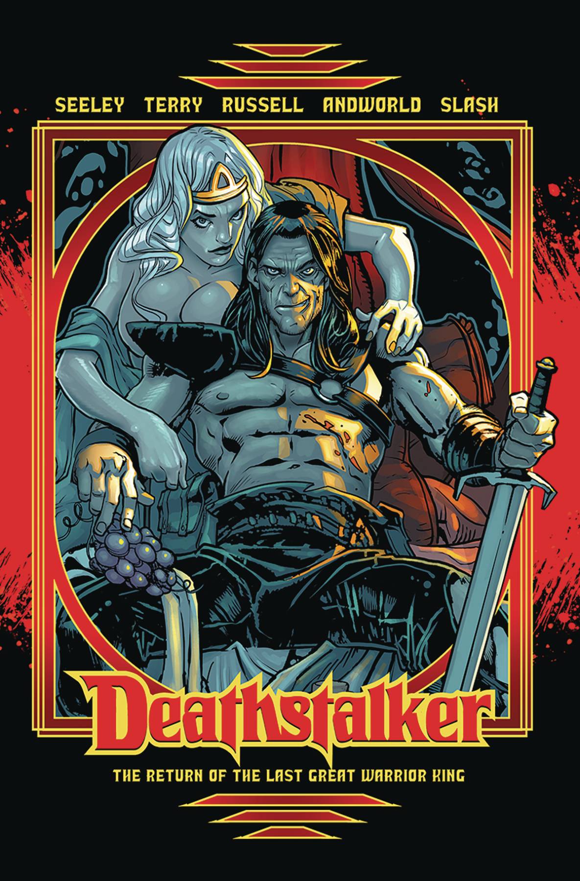 The cult-cinema hero Deathstalker bursts into comics from an all-star lineup of creators including Slash (Guns N' Roses), writer-director Steven Kostanski (The Void), Tim Seeley (Hack/Slash) and Jim Terry (West of Sundown). Deathstalker finds himself once again caught between forces larger than himself, including a virgin-worshiping cult, a sorcerer hell-bent on saving the world through mad science, and the pissed-off army of the Abraxeon kingdom...not to mention his ex-lover, Princess Evie. Monsters, magic, and mayhem abound! Can't a guy just swing his sword anymore?