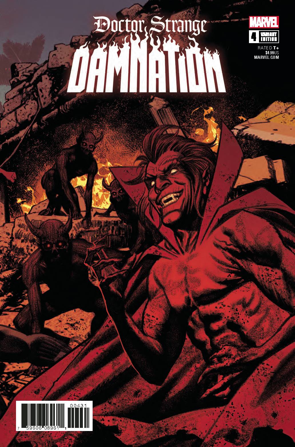 • It's DAMNATION NATION! Mephisto's on a hot streak that won't stop! Every team that's faced him has fallen, while more of the country falls under his influence. • There's just one card left to play: Wong versus Mephisto...ALONE! • Who escapes alive, who escapes undead and who doesn't escape at all? DAMNATION is going out in a blaze of glory, and you GOTTA see who gets burned! Rated T+
