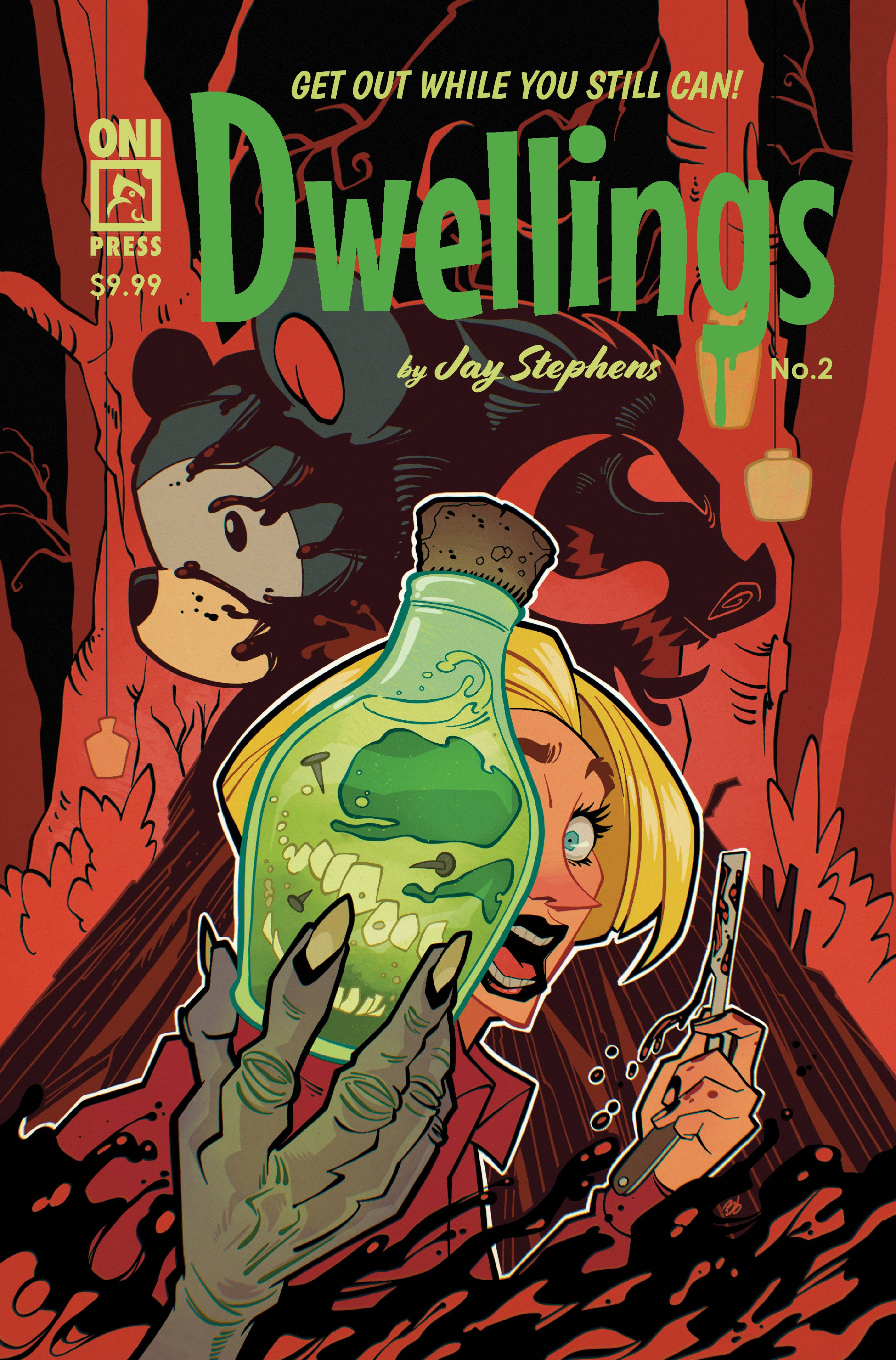 72 pages of terror returns in another triple-sized, bi-monthly dose of the series that has the comic industry screaming: Dwellings! Emmy Award-winning, Eisner-Award-nominated cartoonist and animator Jay Stephens (Secret Saturdays, Jetcat Clubhouse) welcomes you back to Elwich-the small town where the secrets run deep, the quiet streets harbor murderous intent, and even the spirits are prone to fits of jealous rage! In this issue: Two must-read tales of supernatural psychosis and paranormal paranoia! First: Don't bite the hand that feeds you in "Quiet, Suki," especially if that hand is a talking puppet! Then: Investigative reporting meets infrasound in "Sound Mind," as the ghosts of the past come roaring forth.
