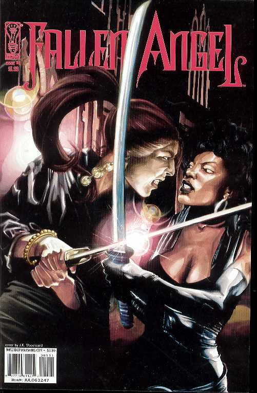 by Peter David In this issue, "Holy War," Part 2: Ayr, a mysterious woman from the Fallen Angel's past, continues her holy war against the city of Bete Noire in hopes of bringing about world peace. Only JJ Sachs stands between her and her goal, but should she be with her or against her and will JJ live to find out? Find out in Fallen Angel #9, written by New York Times Best-selling author Peter David (Spike vs. Dracula) with art by J.K. Woodward.