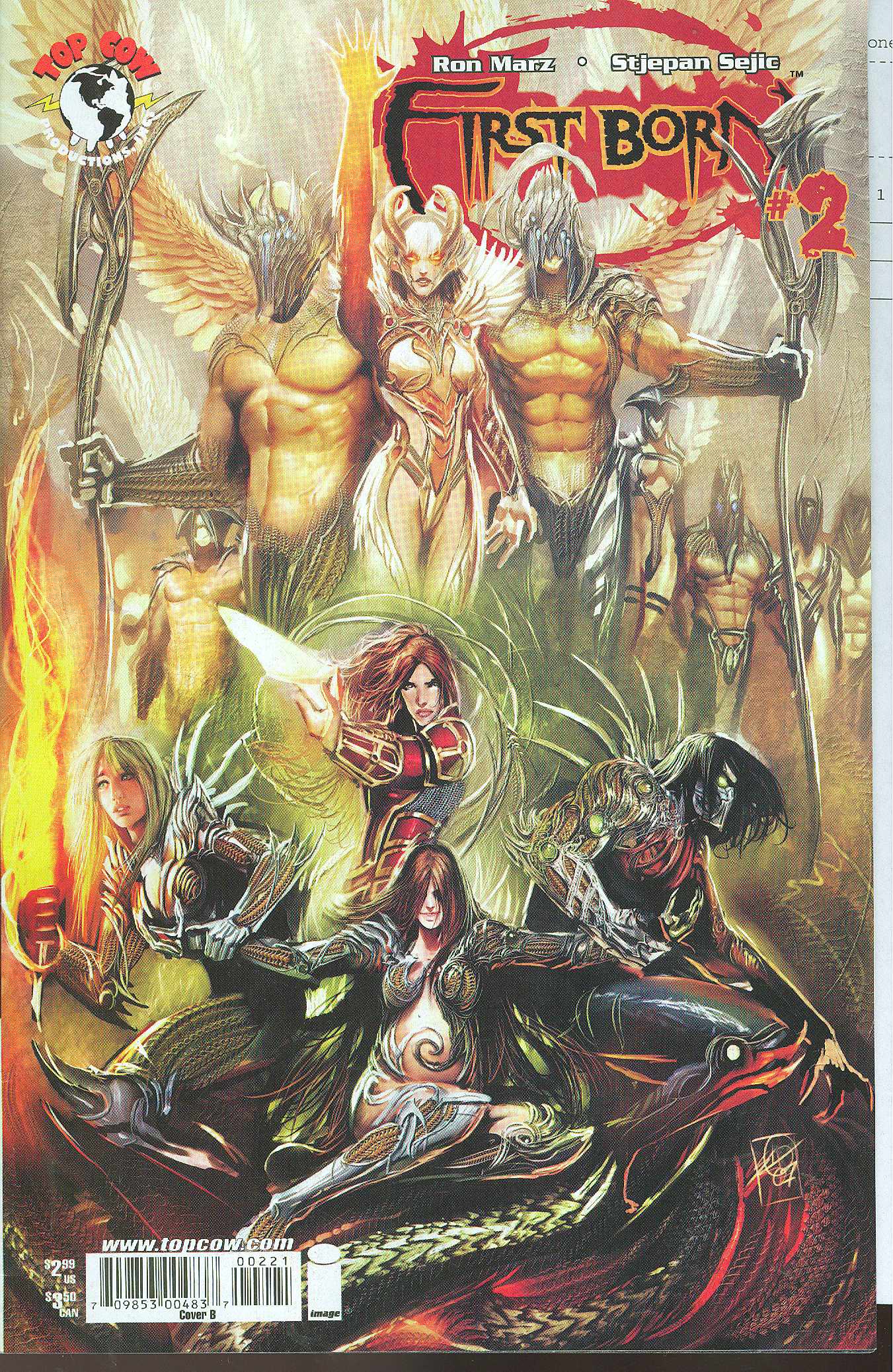 (W) Ron Marz (A) Stjepan Sejic (Cov) Marc Silvestri, Stjepan Sejic First Born goes into overdrive as the delicate truce between the forces of Dark and Light breaks down and Sara Pezzini and Patrick Gleason are caught in the middle! The Darkness and the Angelus throw down in the ultimate melee and the true nature of Sara's pregnancy is revealed. Writer Ron Marz (ION, SAMURAI: HEAVEN & EARTH) and digital painter Stjepan Sejic (THE DARKNESS: LEVEL 1, WITCHBLADE) deliver the second arc of Top Cow's epic three issue series that sets the stage for the next incredible year! FIRST BORN #2 features covers by Marc Silvestri and series artist Stjepan Sejic.