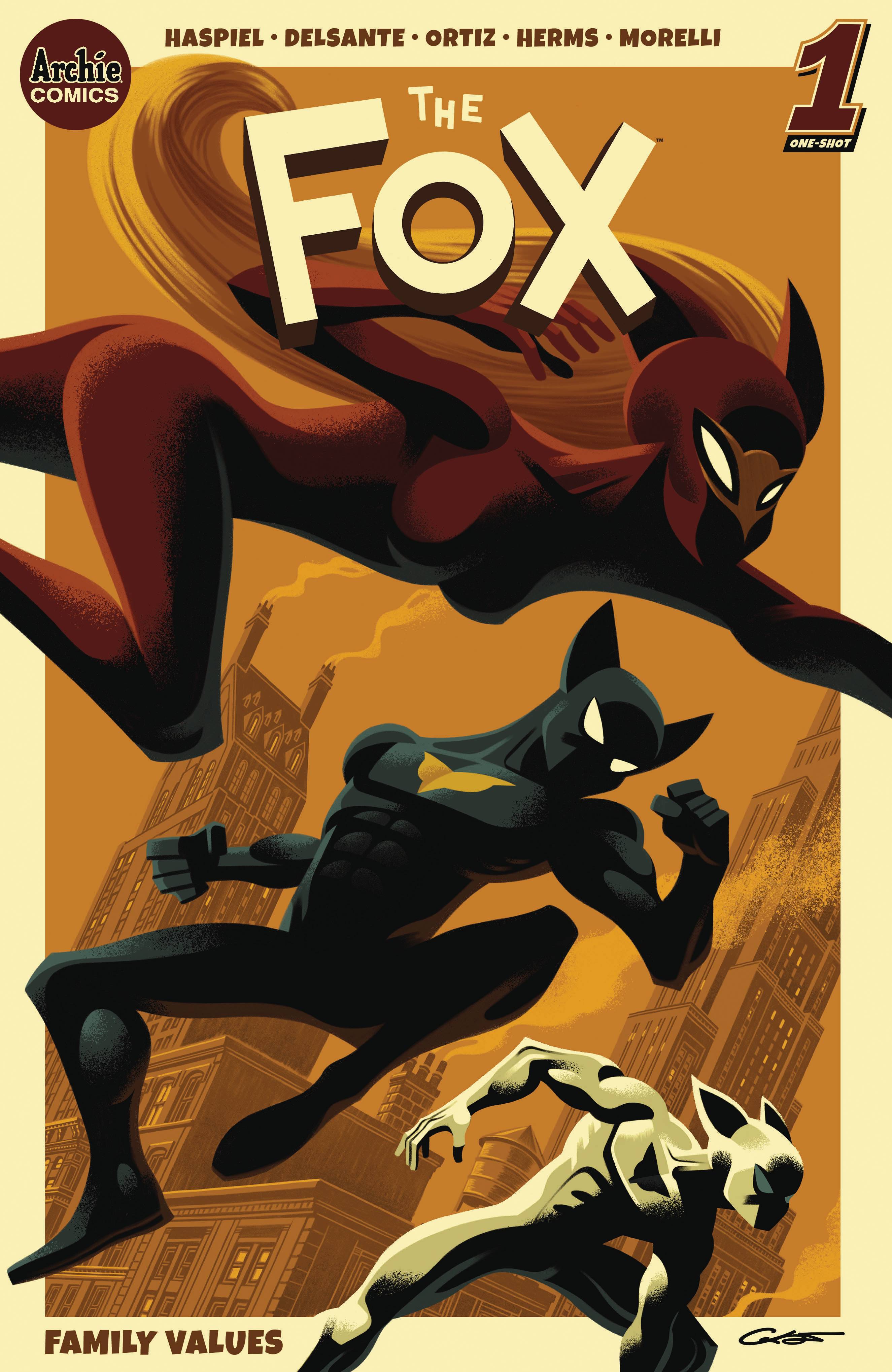 The Fox: Family Values follows the life of the super heroic Patton family, all considered "freak magnets" who can't help but do what they can to save the day... whether they like it or not! First, Dean Haspiel returns to writing and art duties in "Mid-Life Pisces." Can a family of antiheroes with three different philosophical points of view break bread at the end of the day? The patriarch, investigative journalist Paul Patton, Jr. (aka THE FOX) is desperate to find another story. He tries to get his son, Shinji (aka GHOST FOX) to come along with him, but his teenage son is more interested in dating than finding exclusive stories! Meanwhile, his wife, Mae (SHE FOX) must confront some sins of her past in the form of two super-villains! Then, in "Back to Back," written by Vito Delsante with line art by Richard Ortiz, we venture to the past, before Paul and Mae were married! The two are hours away from their wedding ceremony and are presently missing their final wedding rehearsal while they're detained by a mad supervillain. How will they make it to their nuptials? All that PLUS a special reprint of a classic Fox story by the legendary Alex Toth!