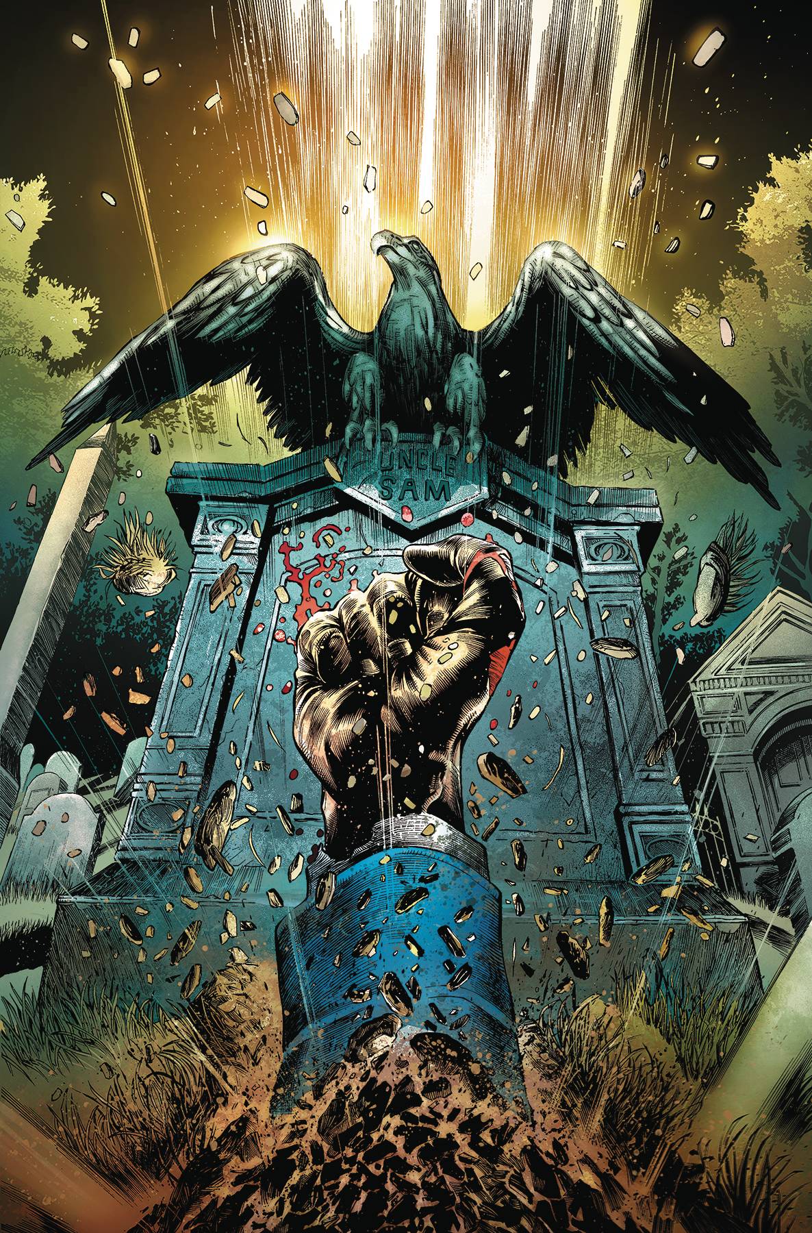 Uncle Sam must return! As the Freedom Fighters launch another very public attack, this time against the Third Reich's version of Mount Rushmore, the team finds itself one step closer to Uncle Sam's rebirth. But their efforts may be all for nothing, as the devious, entitled, psychotic (and did we mention smelly?) Hitler III is hot on their trail, and he's pulling out all the sickest stops to shut the Freedom Fighters down once and for all.