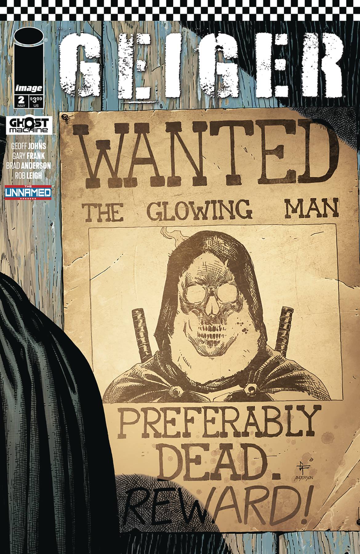 The Unnamed Saga Continues! Tariq Geiger, his two-headed wolf Barney, and their surprising newfound companion begin their quest along the radioactive roads of the former United States to find a cure for the Glowing Man's nuclear-powered condition. But in order to obtain the information they need, Geiger's crew must first help a local sheriff catch and kill a masked raider that's pillaging the town. But what Geiger ultimately discovers chills him to his glowing green bones. And the Electrician isn't far behind...