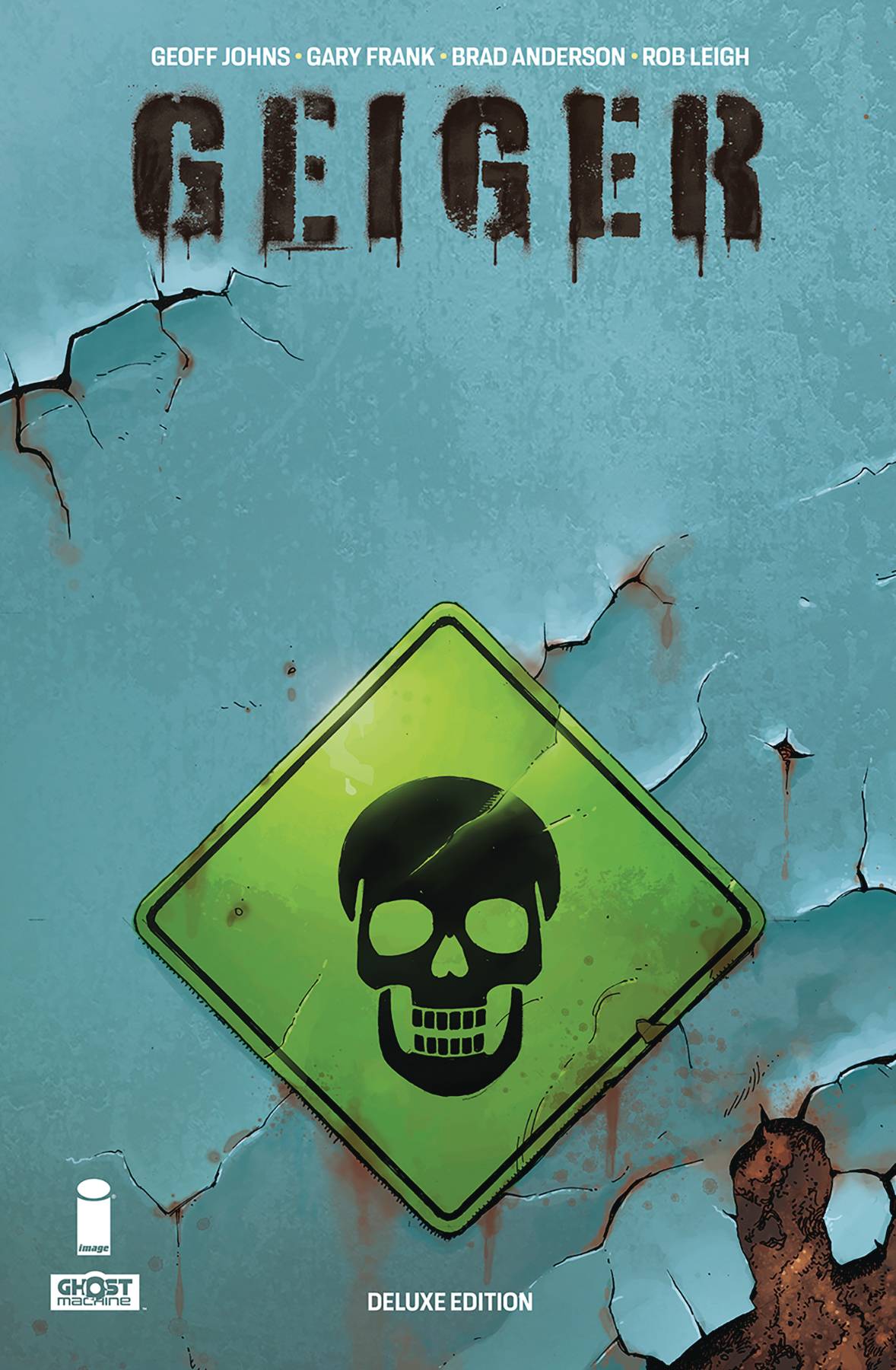 The Unnamed Universe starts here! Set 25 years from now, a nuclear war has ravaged the planet, and desperate outlaws battle for survival in a world of radioactive chaos. Out past the poisoned wasteland lives a man even the Nightcrawlers and Organ People fear. His name is Tariq Geiger, whose body has transformed into a living nuclear reactor waiting to explode. And he will do anything to protect his wife and children, sealed inside a fallout shelter and completely cut off from him. But the Warlords of Vegas want Geiger dead, and if his family must be released into the toxic soup, so be it. By the critically acclaimed team of writer Geoff Johns, artist Gary Frank, and colorist Brad Anderson (Doomsday Clock, Batman Earth One), this gorgeous, oversized hardcover collects Geiger #1-6, portions of Geiger 80-Page Giant #1, and over 30 pages of bonus material!