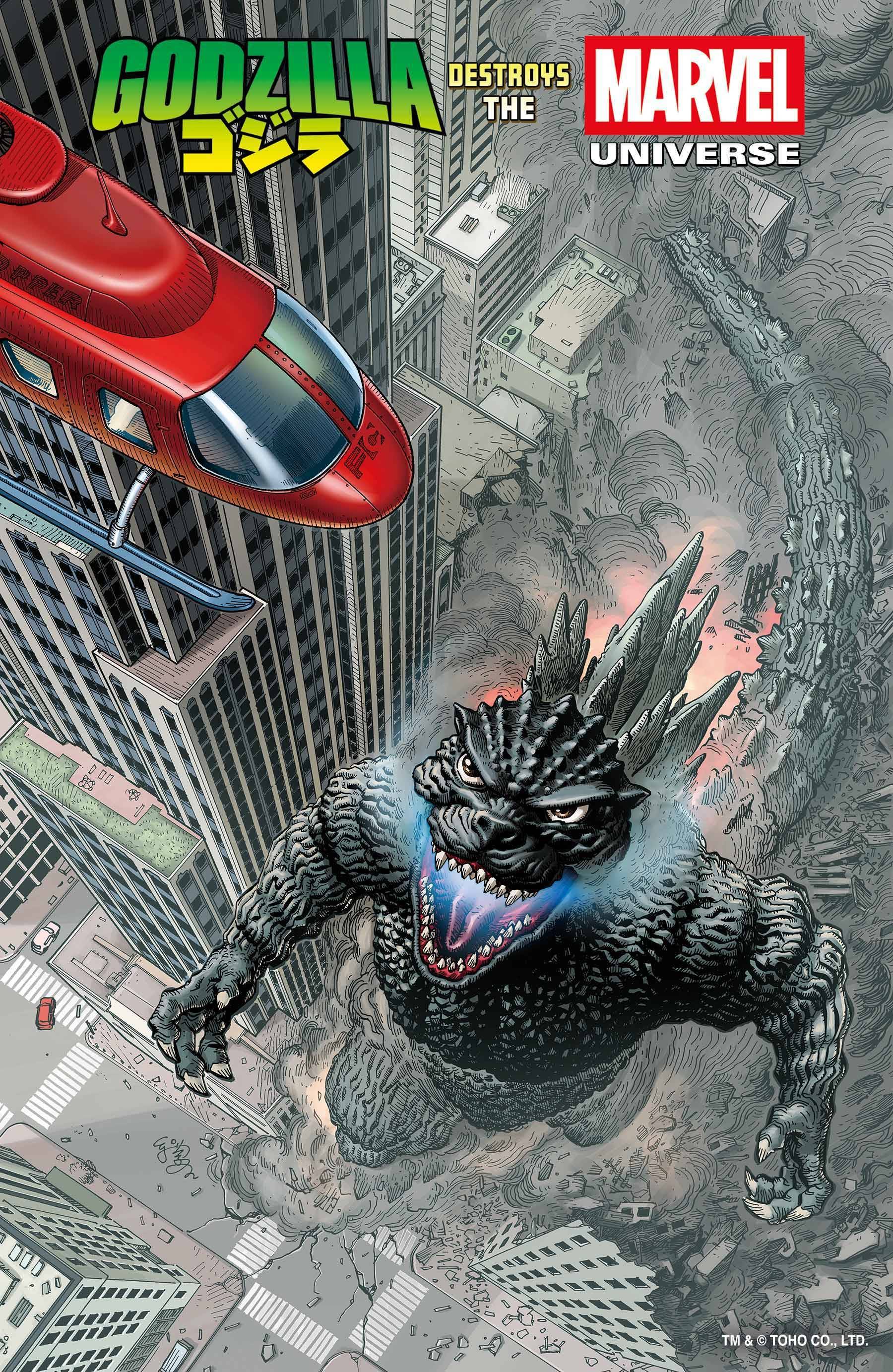 LOOK OUT NEW YORK! A previously dormant Godzilla has been angrily awoken and begun carving a path of annihilation as Earth's Mightiest Heroes band together to try and stop it's cataclysmic rampage! But when their combined efforts fail to slow the Bringer of Destruction, Earth's heroes are forced to go to extraordinary lengths to try and bring Godzilla down - including joining forces with Earths most devious villains! But will this be enough to stop Godzilla as it tears straight through the Marvel Universe into the Dark Dimension and other realms? Plus, how is the King of the Monsters connected to the mysterious metal, Vibranium, and what does this mean for Wakanda? In the face of an unstoppable force of nature, the Marvel Universe must come together like never before in this earth-shattering fight for Earth's survival. It's all hands on deck in the FIRST of FIVE electrifying chapters in this epic saga! Rated T