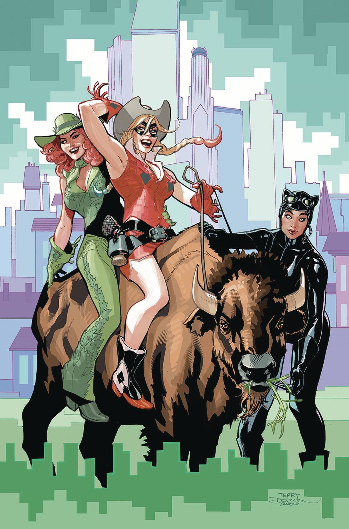 When a violent and highly illegal energy drink-sponsored hunting operation threatens the lives of wildlife and the residents of Gotham City alike, the only ones fit to save the day are the criminal trio of Catwoman, Poison Ivy, and Harley Quinn. Back together again for the first time in years. Sometimes the only way to fight bad is with even worse! With special appearances by White Rabbit, Punchline, and introducing the himbo cowboy henchmen sensation soon to be sweeping the nation known as The Nasty Boys! Get your chaps, spurs, and hats out cause it's hunting season! By the end of story you'll be covered in guts, goo, and grit! Featuring the talents of Leah Williams, Matteo Lolli, Daniel Hillyard, and more! If you're not chanting Hot tubs and headshots and hotties, oh my! by the end of this four-week-long series, you're doing it wrong!