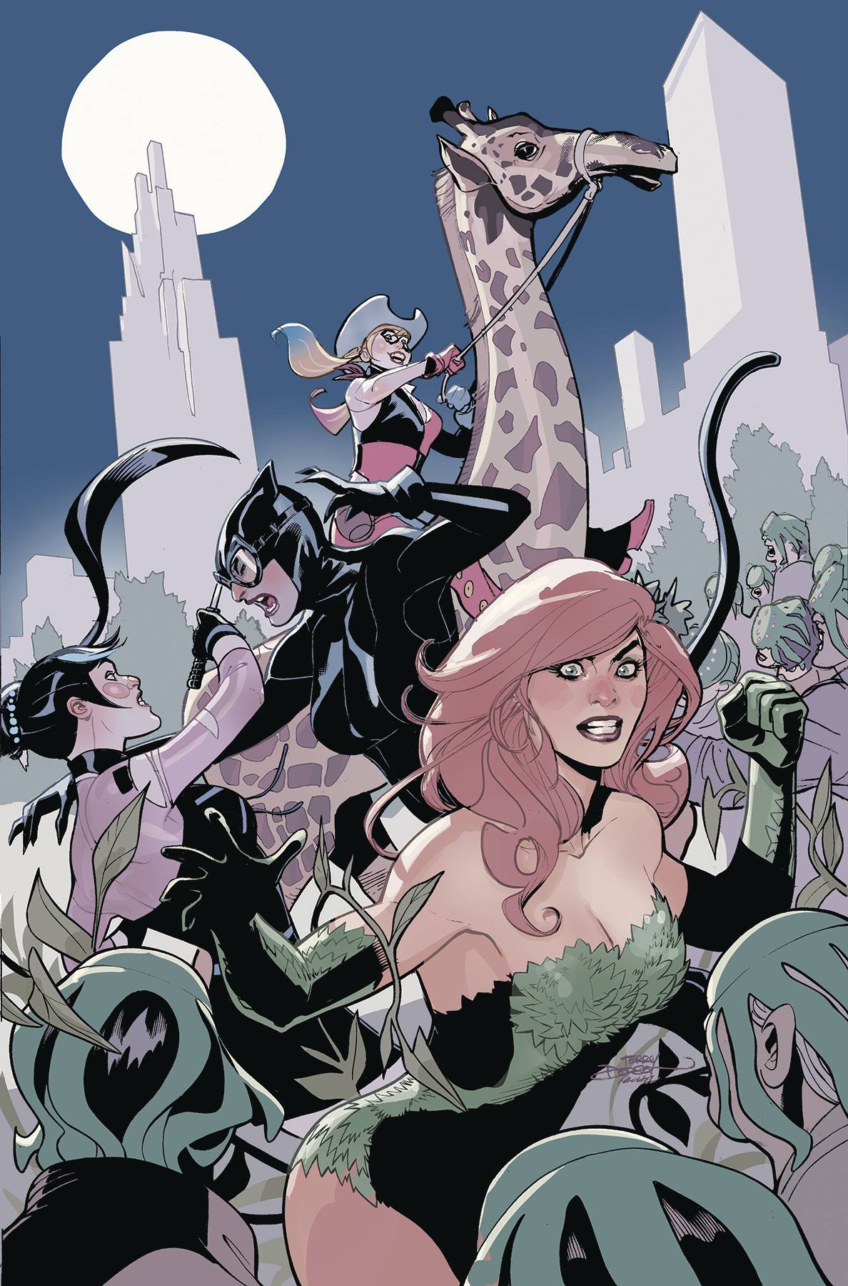 When a violent and highly illegal energy drink-sponsored hunting operation threatens the lives of wildlife and the residents of Gotham City alike, the only ones fit to save the day are the criminal trio of Catwoman, Poison Ivy, and Harley Quinn. Back together again for the first time in years. Sometimes the only way to fight bad is with even worse! With special appearances by White Rabbit, Punchline, and introducing the himbo cowboy henchmen sensation soon to be sweeping the nation known as The Nasty Boys! Get your chaps, spurs, and hats out cause it's hunting season! By the end of story you'll be covered in guts, goo, and grit! Featuring the talents of Leah Williams, Matteo Lolli, Daniel Hillyard, and more! If you're not chanting Hot tubs and headshots and hotties, oh my! by the end of this four-week-long series, you're doing it wrong!