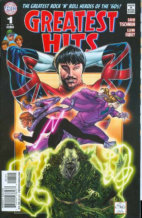 Written by David Tischman Art and Cover by Glenn Fabry Variant cover by Ethan Van Sciver Meet the Mates! They're the greatest super team of all time, straight out of England and into our hearts: Crusader, The Solicitor, Vizier and Zipper. But who are the heroes behind the mania? How did they meet? And what's next for The Mates? You'll find out in this fab 6-issue miniseries written by David Tischman (BITE CLUB) with art by Glenn Fabry (NEVERWHERE, PREACHER and HELLBLAZER covers) that pulls back the curtain to reveal the men behind the masks. GREATEST HITS looks at The Mates, from their humble 1960s beginnings, through the drug-fueled 1970s, and into the techno '80s, the grungy '90s, and to the present day. This is The Mates from the height of their glory to the depths of excess, as filmed by a struggling Hollywood director - one with his own dark ties to the team. Retailers please note: This issue will ship with two covers. For every 10 copies of the Standard Edition (with a cover by Glenn Fabry), retailers may order one copy of the Variant Edition (with a cover by Ethan Van Sciver). Please see the Previews Order Form for more information. On sale September17 1 of 6 32 pg, FC, $2.99 US MATURE READERS