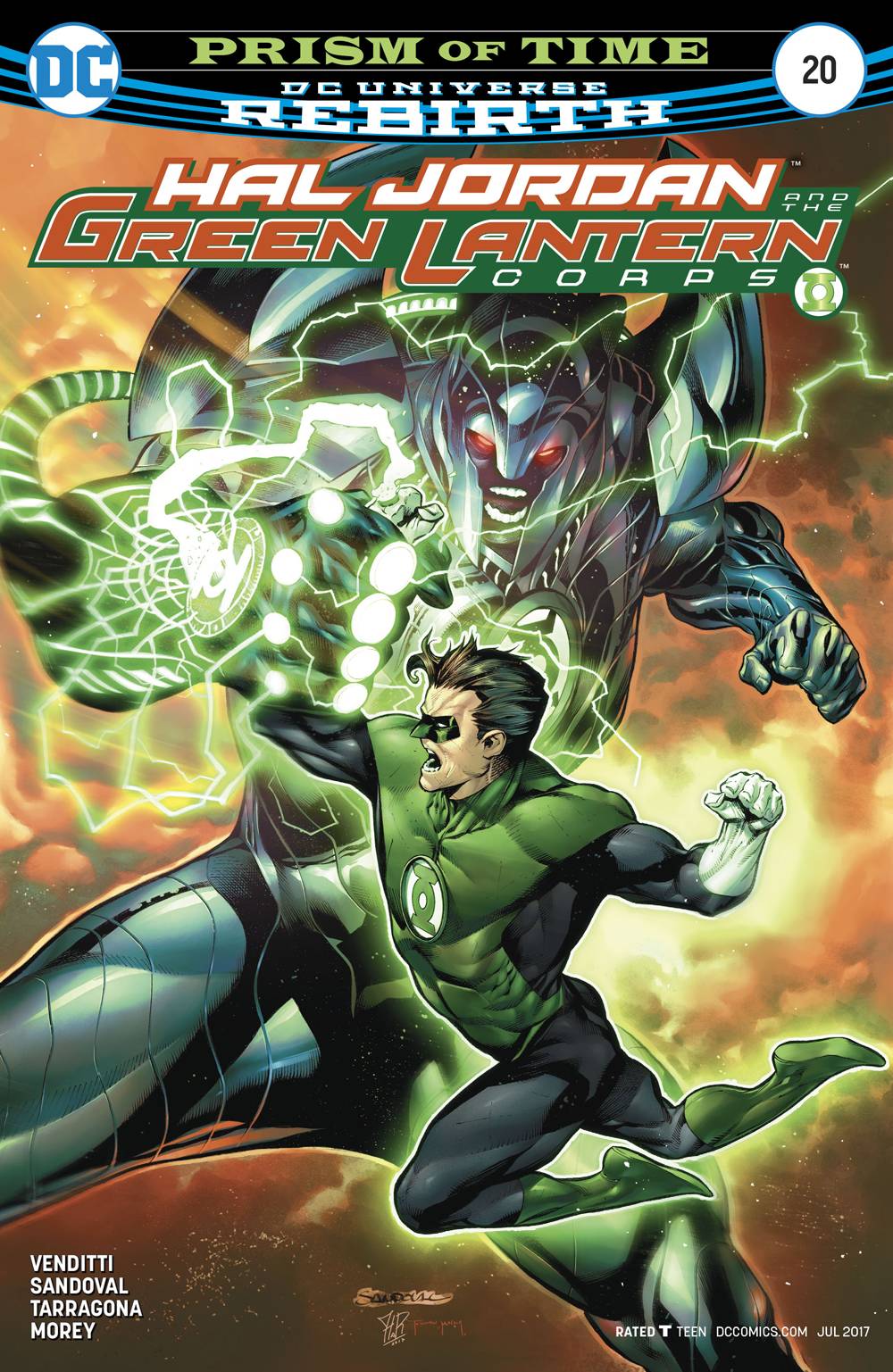 PRISM OF TIME part three! As a final confrontation between the prism beasts of Sarko and the remaining Green Lanterns comes to a head on Mogo, the Corps tries to hold their ground as Hal Jordan embarks on a stealth mission to the planet where he forged his Green Lantern ring! But what he finds there brings Hal back to past decisions he'll now regret. RATED T