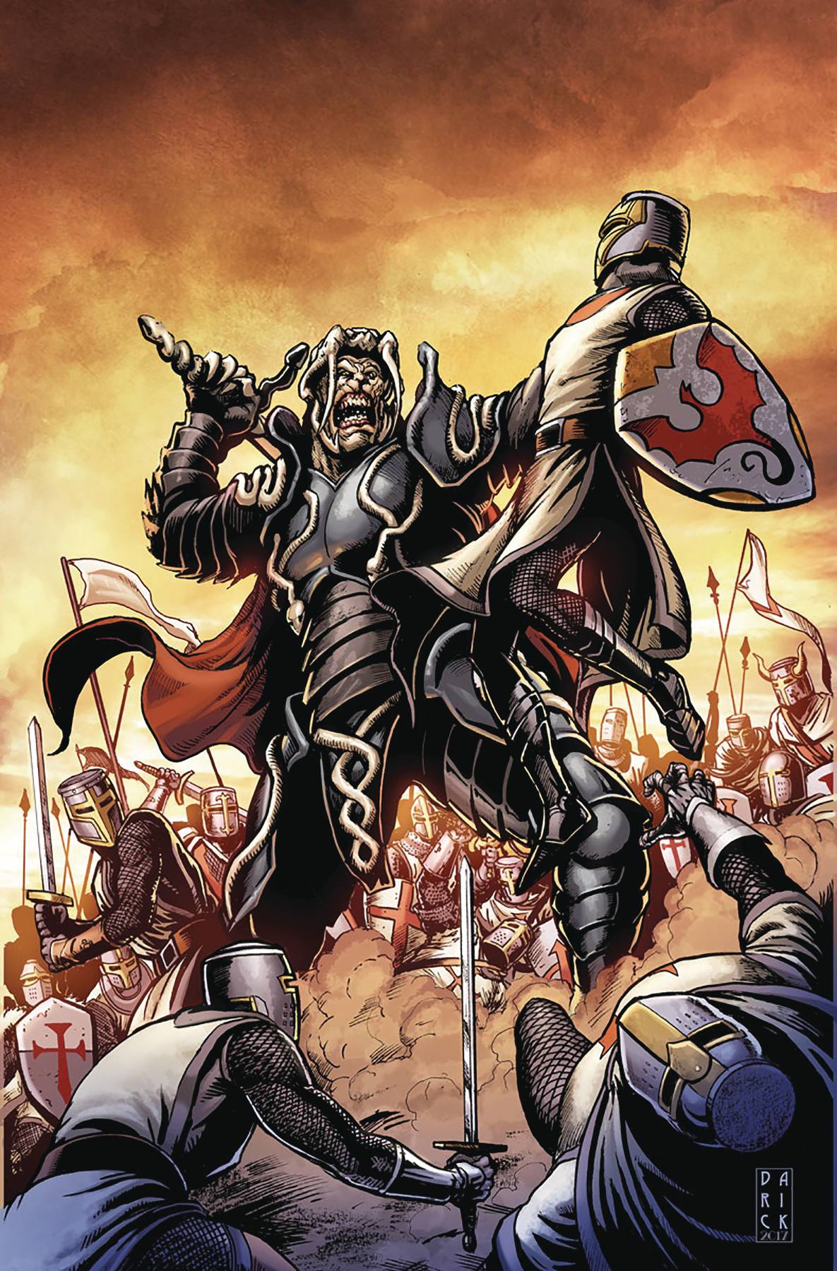 Brutal Beginnings! Centuries ago, at the height of the dark ages, one of the world's first psiots has made a terrible discovery... he is not alone. Lurking in the shadows of humanity awaits the "The Strombringer," a psiot with it a darkness so great, it will destroy everyone with special abilities around him. But what great secret about these legendary figures will finally be exposed...and how will it shape the catastrophic Harbinger War that is to come? "MASSACRE" presents an insidious interlude traveling back to the origins of evil itself, as Harvey Award nominated writer Rafer Roberts (Plastic Farm) and superstar artist Darick Robertson unveil the origins of the Valiant Universe's next major villain... and reveal an untold confrontation between H.A.R.D. Corps. Leader Charlie Palmer and Alexander Solomon.