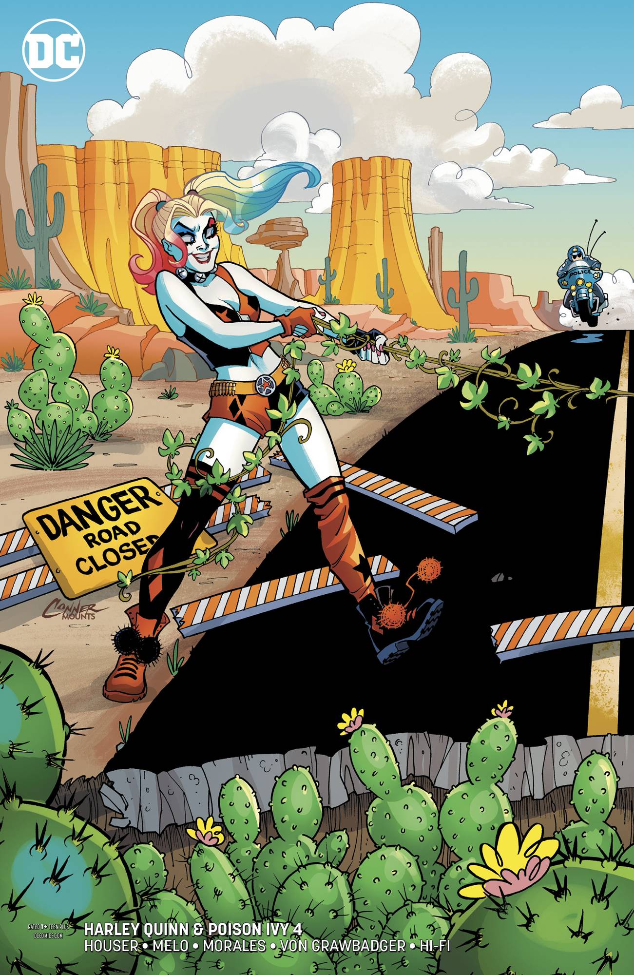 The hits just keep on coming as Harley Quinn and Poison Ivy crawl away from the rabbit hole that is the Mad Hatter's endless tea party and get back on the road- but when they take a rest in a seemingly abandoned dinosaur theme park, they may not be the only clever girls hanging around...