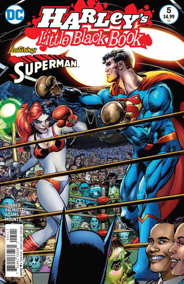 (Mumble-mumble) years ago, the alien race known as the Scrubb forced Superman into a boxing match for the ages, against Earth's greatest heavyweight champion, (mumble-mumble)! Now, (mumble-mumble) years later, the Scrubb have returned...but with said champion unavailable, the Scrubb have chosen the next-best thing: Harley Quinn! This can't end well for anyone involved. Featuring unbelievable art by the legendary Neal Adams, it's a tribute to one of the greatest Superman stories of the 1970s, in Harley Quinn's own particular, ah, idiom!