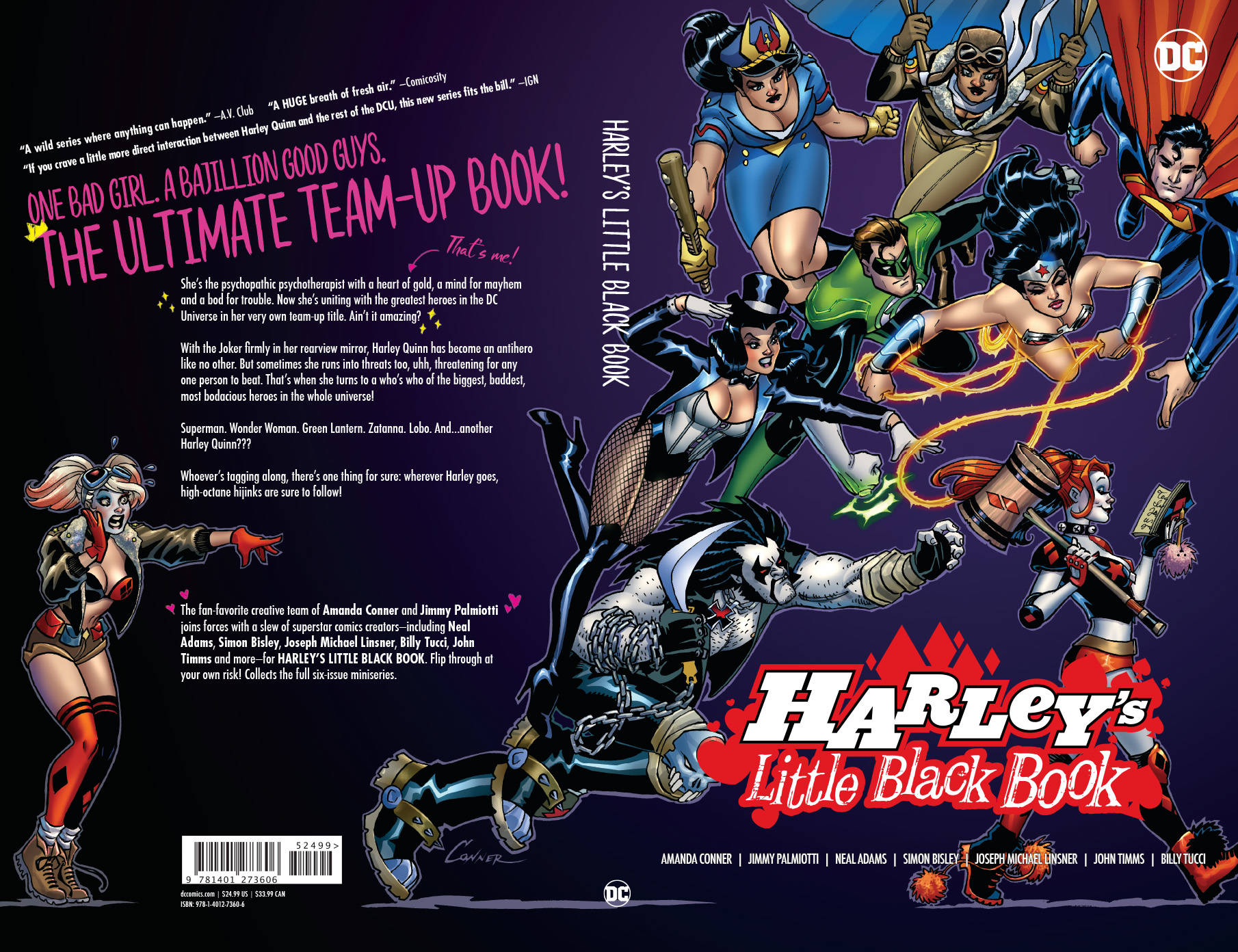 It's the sensational team-up series in which Harley meets (and annoys) DC's greatest heroes and villains! Harley teams up with Wonder Woman, Green Lantern, Lobo and more! But can she keep up with beings of this caliber? Collects HARLEY'S LITTLE BLACK BOOK #1-6.