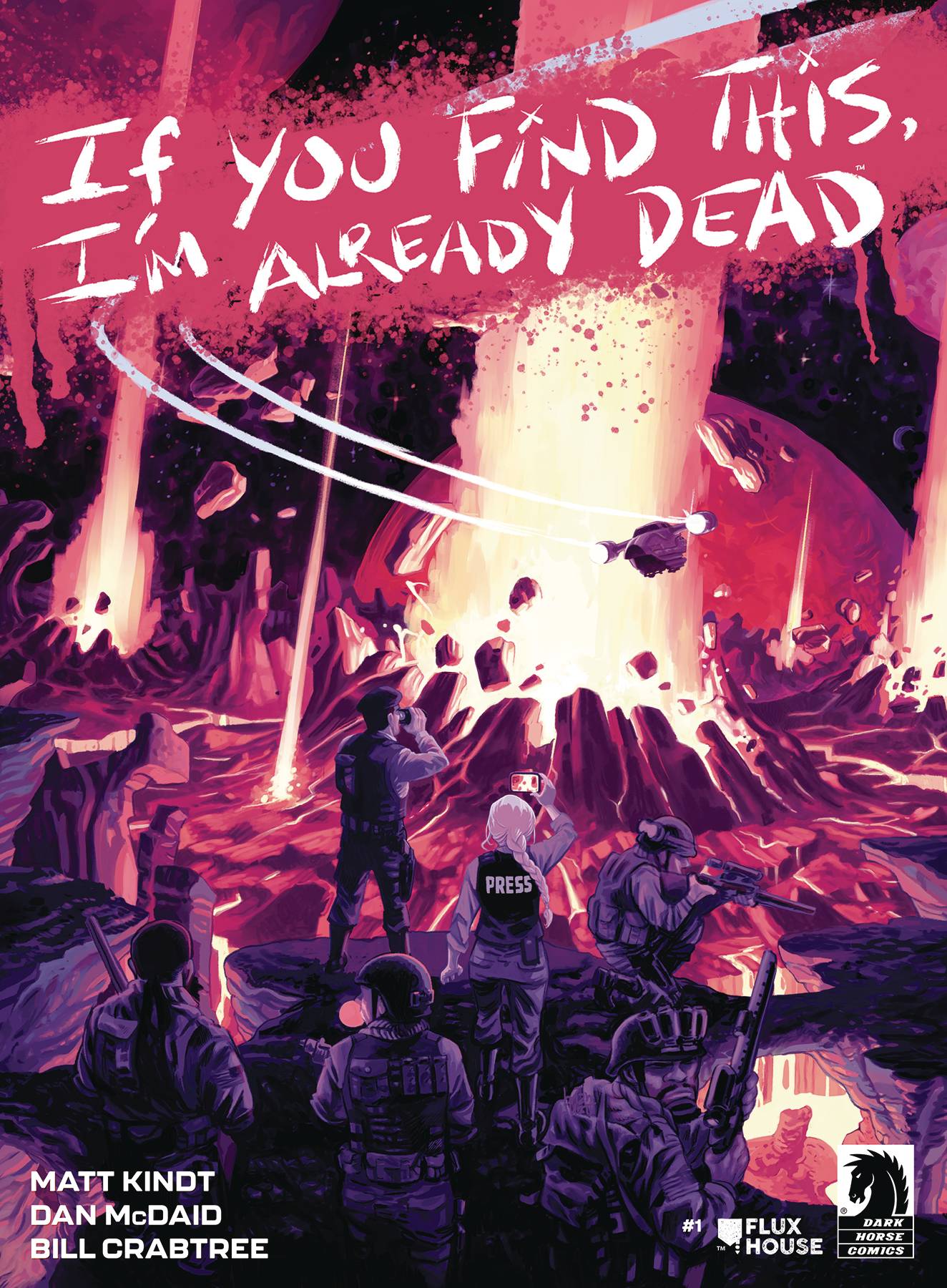 From the New York Times bestselling creator of Mind MGMT and cowriter of BRZRKR with Keanu Reeves comes a multi-dimensional cosmic odyssey presented in a pulp magazine-sized format! Robin is a big city reporter, embedded with US Marines heading to the hostile pocket universe called Terminus. Ten minutes in, the entire marine squad is wiped out and she has to survive (and report) on her own. Terminus is full of cosmic wonders-and sci-fi "gods" that are in the middle of a political power struggle. The language is alien, and the politics are deadly. Can she survive long enough to figure out what's going on and get home to tell the story? If You Find This, I'm Already Dead is the latest release from FluxHouse Books, a new boutique imprint that will feature the writing (and sometimes) art of acclaimed comics creator Matt Kindt, with crime, science fiction, horror, and humor stories, all told and presented in startling and untraditional ways.