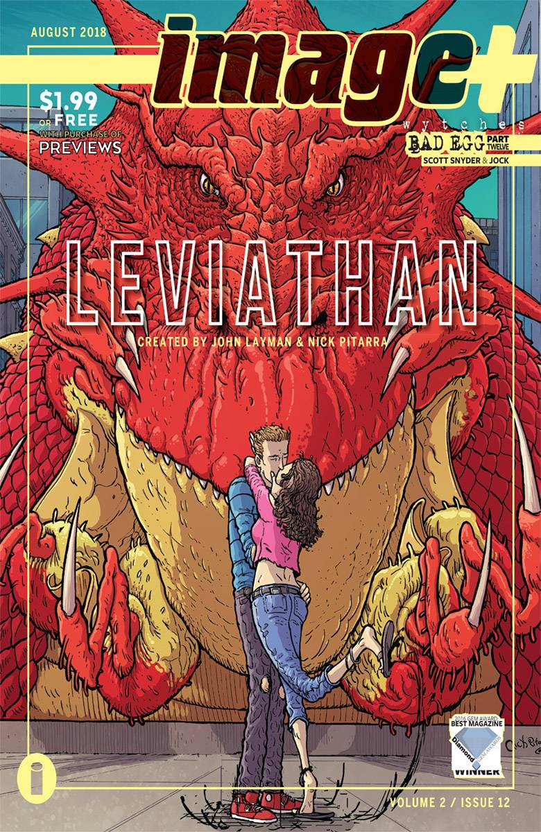 IMAGE+ captures the unrelenting imagination and inspired craft behind the comics redefining the industry now. Packed with exclusive previews, features, and art walkthroughs, this issue features NICK PITARRA and his frenzied art for his Kaiju-themed blockbuster with writer JOHN LAYMAN, LEVIATHAN. We also explore the deep chronology behind Image's longest-running books, with writers charting their process for evolving characters and worlds over decades. SCOTT SNYDER and JOCK's WYTCHES: BAD EGG reaches its unnerving penultimate chapter, as two boys discover the monsters lurking in the woods-and in their families-who have sold their souls to eldritch horrors. IMAGE+ is free with any purchase of Diamond's Previews.