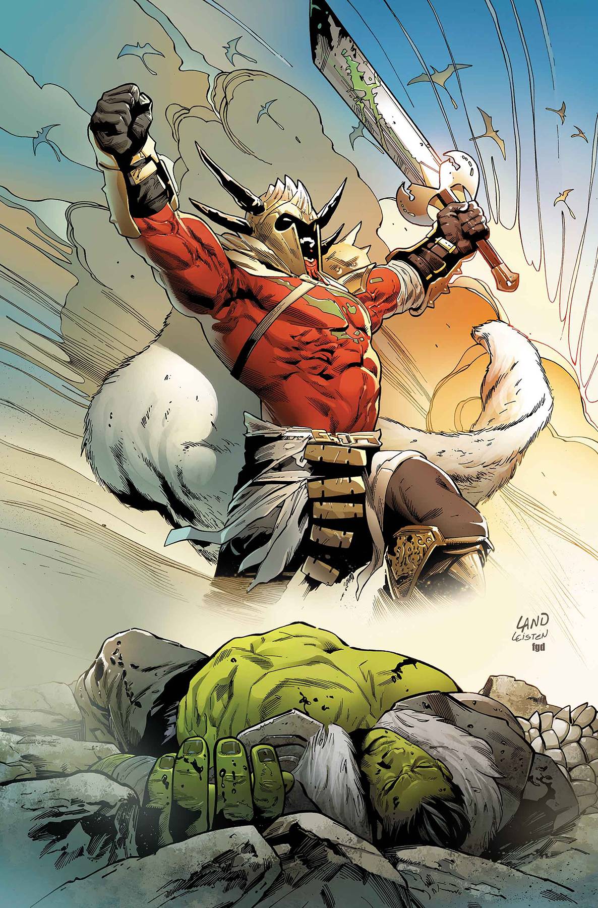RETURN TO PLANET HULK PART 5 • HULK has reached the final level of THE GAUNTLET! The freedom of the DOKA'ABI CLAN rests on his shoulders alone... • Who is the true WORLD BREAKER? With AMADEUS refusing to embrace the DARK HULK within, it's up to the Warlord of Sakaar to show him real brutality... • Guest-starring THE UNWORTHY THOR! Rated T