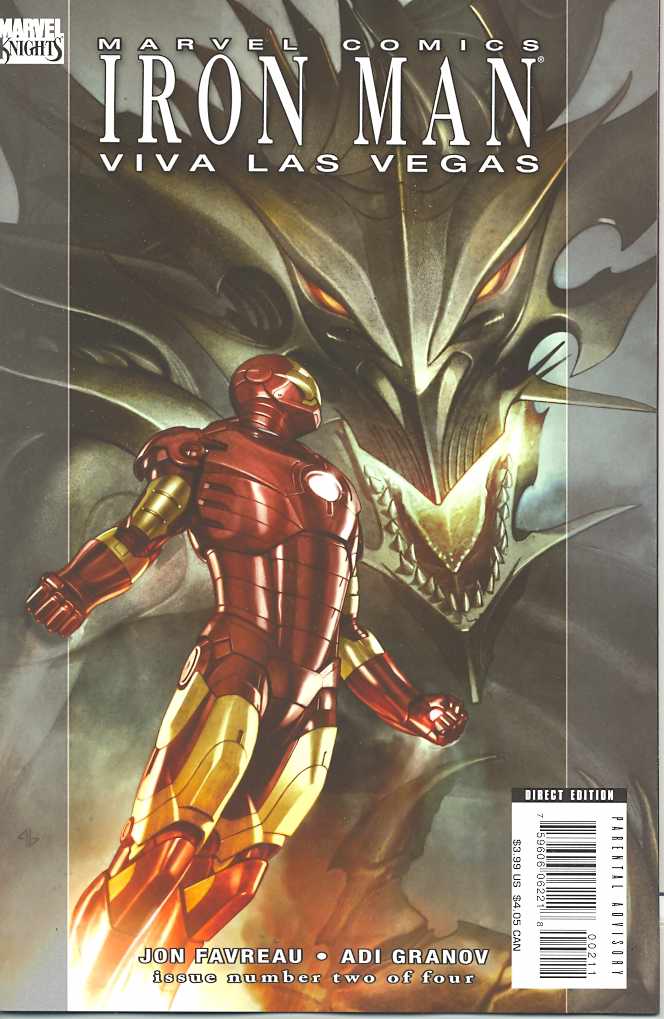 Written by JON FAVREAU Pencils & Cover by ADI GRANOV With the aid of archaeologist Elsa Bloodstone, Tony Stark has discovered the cause of the plague of reptiles that's crippled the Las Vegas strip! Unfortunately for his armored alter ego, that something is "He Whose Limbs Shatter Mountains, And Whose Back Scrapes The Sun"--Fin Fang Foom! 32 PGS./Cardstock Cover/Rated T+ ...$3.99 PRODUCT UPDATE (040908): Iron Man: Viva Las Vegas #2 will now carry a Parental Advisory, not the originally solicited T+ rating.