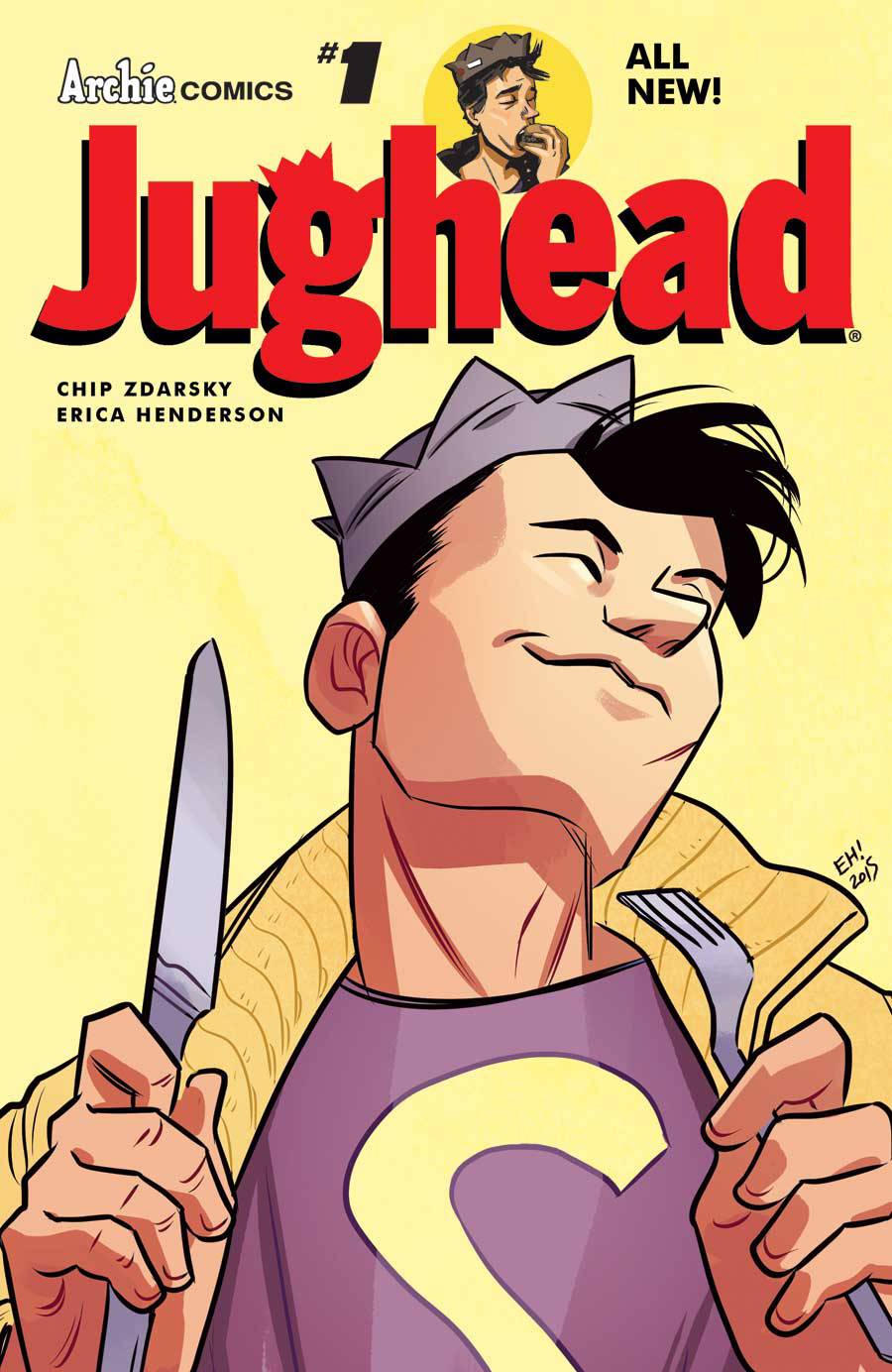 In the grand tradition of comic book reboots like Archie #1, Archie Comics proudly presents Jughead #1 from the comics dream team of Chip Zdarsky (Howard the Duck) and Erica Henderson (The Unbeatable Squirrel Girl)! Riverdale High provides a quality education and quality hot lunches, but when one of those is tampered with, Jughead Jones swears vengeance! Well, we mean, he doesn't "swear." This is still Archie Comics after all.