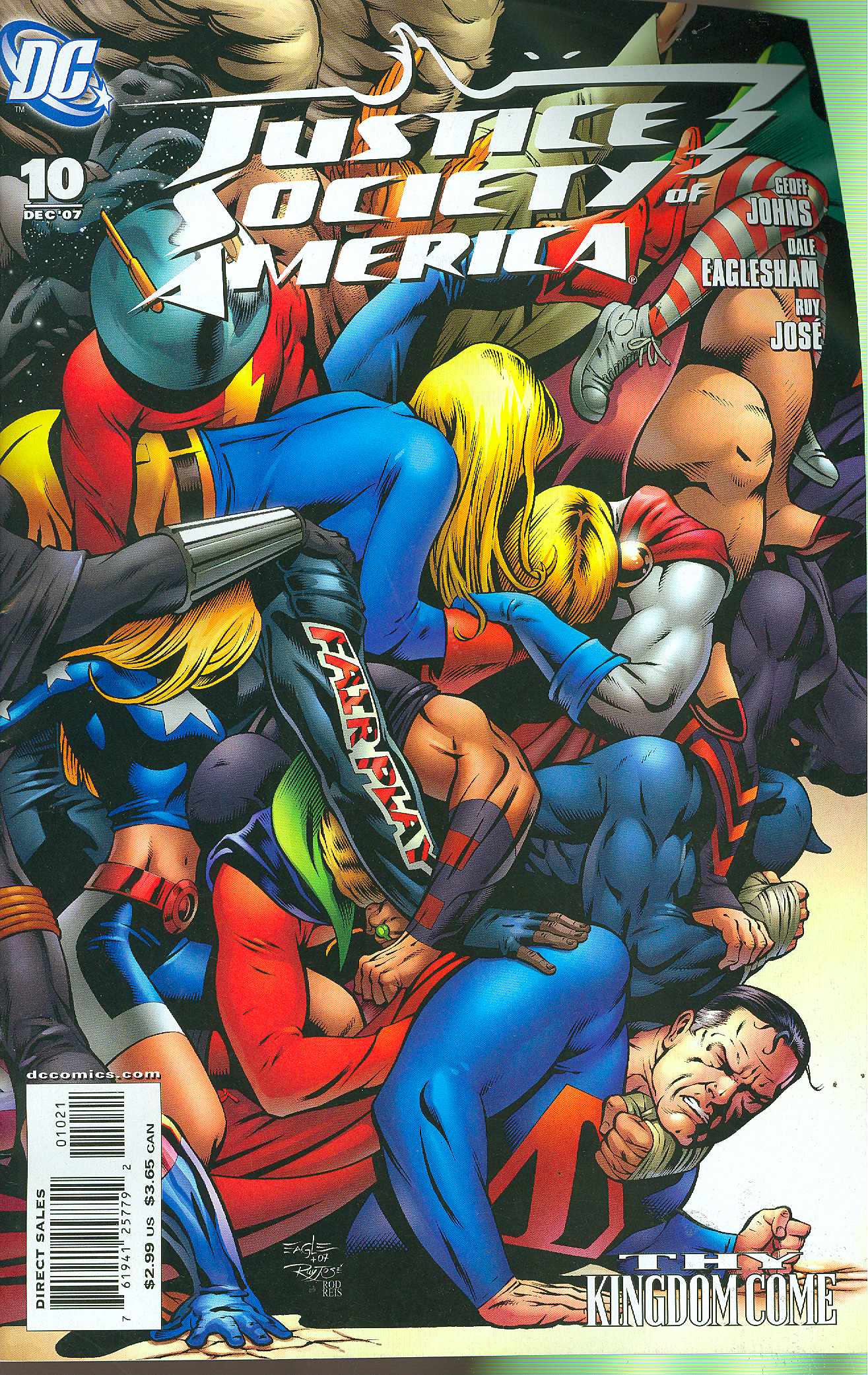 Written by Geoff Johns & Alex Ross Art by Dale Eaglesham & Ruy Jose Cover by Alex Ross Variant cover by Eaglesham & Jose Alex Ross joins Geoff Johns as co-writer for Part 1 of "Thy Kingdom Come," the epic story years in the making, springing from KINGDOM COME! Not a hoax! Not a dream! Not an imaginary story! Welcome the newest member to the Justice Society of America: the Kingdom Come Superman! Coming from an Earth plagued by heroes-gone-extreme, how will this Superman react to an incarnation of the Justice Society he never knew? This Superman's world needed better heroes. So does ours.