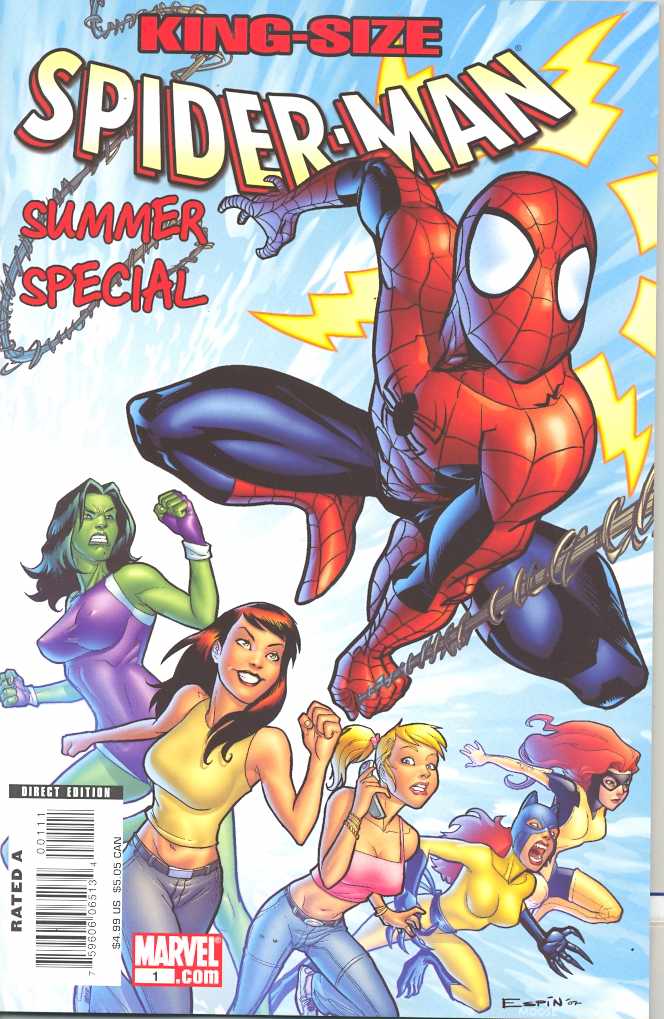 Written by KEITH GIFFEN & PAUL TOBIN Art by RICK BURCHETT & COLLEEN COOVER Cover by SALVA ESPIN August is still summer, right? Yeah? COOL! Then we're hittin' ya up with two ALL-NEW Spidey stories from times when he wasn't Secretly Invading or Branding New Days. First, Spidey teams up with Falcon to handle an outbreak of futuristic weaponry showing up in Harlem, and then MARY JANE takes center stage as she teams up with She-Hulk, Hellcat, Marvel Girl and some other lovely ladies to take on The Enchantress, in this one-shot! 48 PGS./Rated A PRODUCT UPATE (061108): The King Size Spider-Man Summer Special will no longer contain the "Mr. and Mrs. Spider-Man" story.