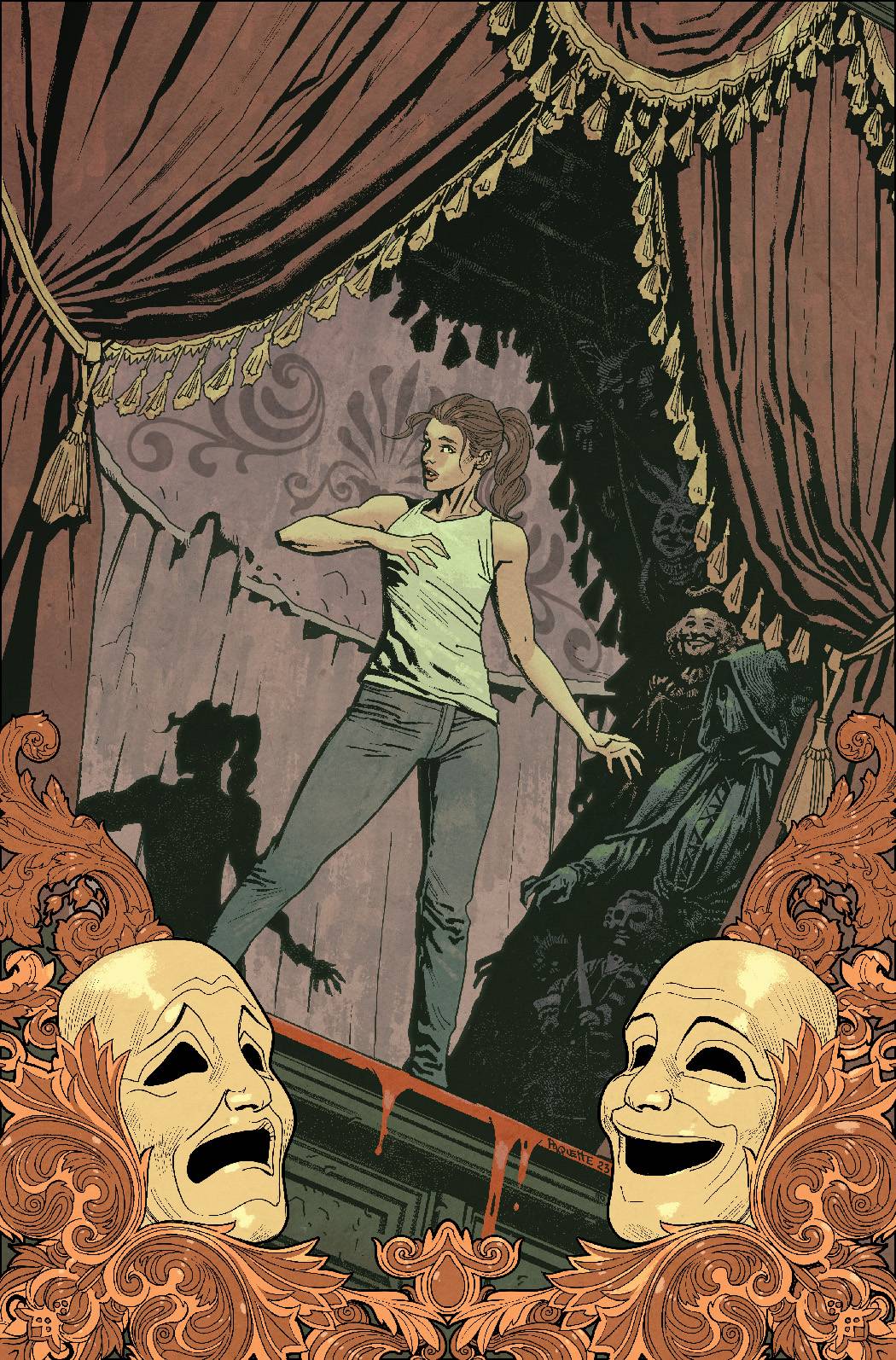 From the mind's eye of master storyteller Cullen Bunn (The Sixth Gun, Basilisk) and rising star Arjuna Susini (Made Men) comes a darkly glamorous tale of bone-splintering terror at the intersection of shadow and light... dream and nightmare ... life and the grim specter of Death himself. After weeks of grueling rehearsals, a new production is set to begin at the famed Requiem theatre: Razide's Lament, three acts of gothic horror set inside a haunted castle with a story that some say is more than mere fantasy. Under the stern rule of a dedicated but temperamental director, the script seems to be ever-changing, and, more mysterious still, our lead actress has found herself cast in the role of a lifetime without so much as an audition. Her grand debut is fast approaching-and, with it, a barrage of razors in the night that will terrorize audiences and actors alike. There is no exit, no escape, and when the curtain finally rises, Razide himself will take center stage to cross the threshold into the unholy darkness that lies just beyond ...